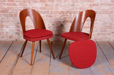 Židle jsou v původním velmi dobře zachovalém stavu. Čalounění bylo profesionálně vyčištěno, což podtrhuje jejich autentický charakter a zároveň zajišťuje komfortní posezení. Tento ikonický set představuje skvělou investici pro milovníky kvalitního československého designu.