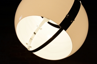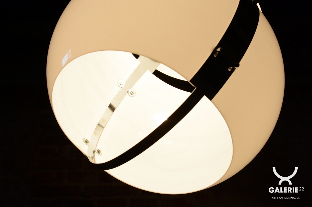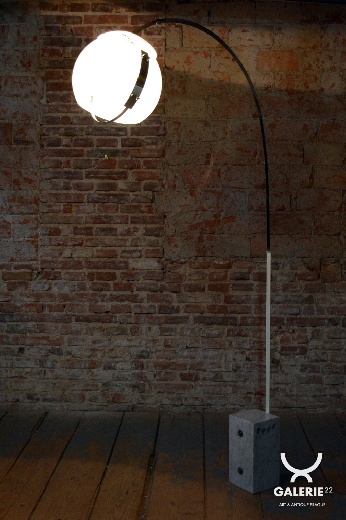 Svítidlo prošlo precizním restaurováním. Konstrukce z chromované oceli byla profesionálně vyčištěna a disponuje funkčním výsuvným ramenem, které umožňuje plynulé nastavení výšky svítidla podle potřeb interiéru. Výjimečnou stabilitu celého kusu zajišťuje velmi těžká mramorová základna, která tvoří luxusní protipól k lehkému polykarbonátovému stínidlu. Lampa má novou elektrifikaci, je plně funkční a připravena stát se designovou dominantou vašeho prostoru.