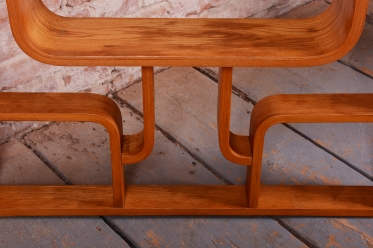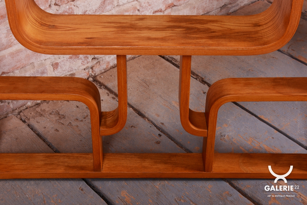 Tato ikonická pokojová stěna, známá také jako divider, je jedním z nejslavnějších návrhů designéra Ludvíka Voláka. Byla vyrobena v 60. letech 20. století v národním podniku Dřevopodnik Holešov a dnes patří k celosvětově vyhledávaným ikonám stylu Mid-Century Modern. Stěna je vyrobena technologií ohýbaného vrstveného dřeva s ušlechtilou jasanovou dýhou, jejíž světlá a výrazná kresba dodává celému kusu lehkost a organický charakter.