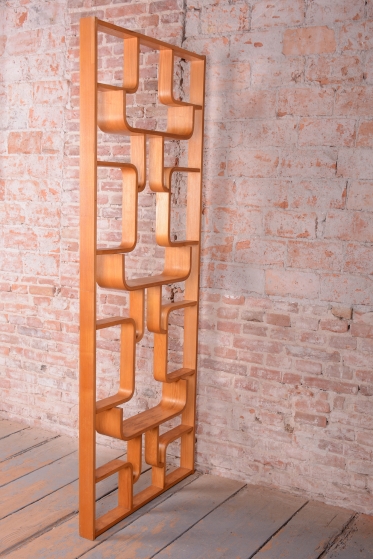 Předmět prošel odborným restaurováním, při kterém byla citlivě oživená původní politura, čímž se obnovila přirozená krása dřeva při zachování historické patiny. Konstrukce je pevná a stabilní, což umožňuje její všestranné využití v prostoru. Díky svému sochařskému pojetí a geometrické síti otvorů slouží nejen jako estetický rozdělovač místnosti, ale je také ideální jako květinová stěna nebo stylová knihovna. Tento nadčasový prvek vnáší do interiéru vzdušnost a nezaměnitelnou atmosféru československého designu 60. let.