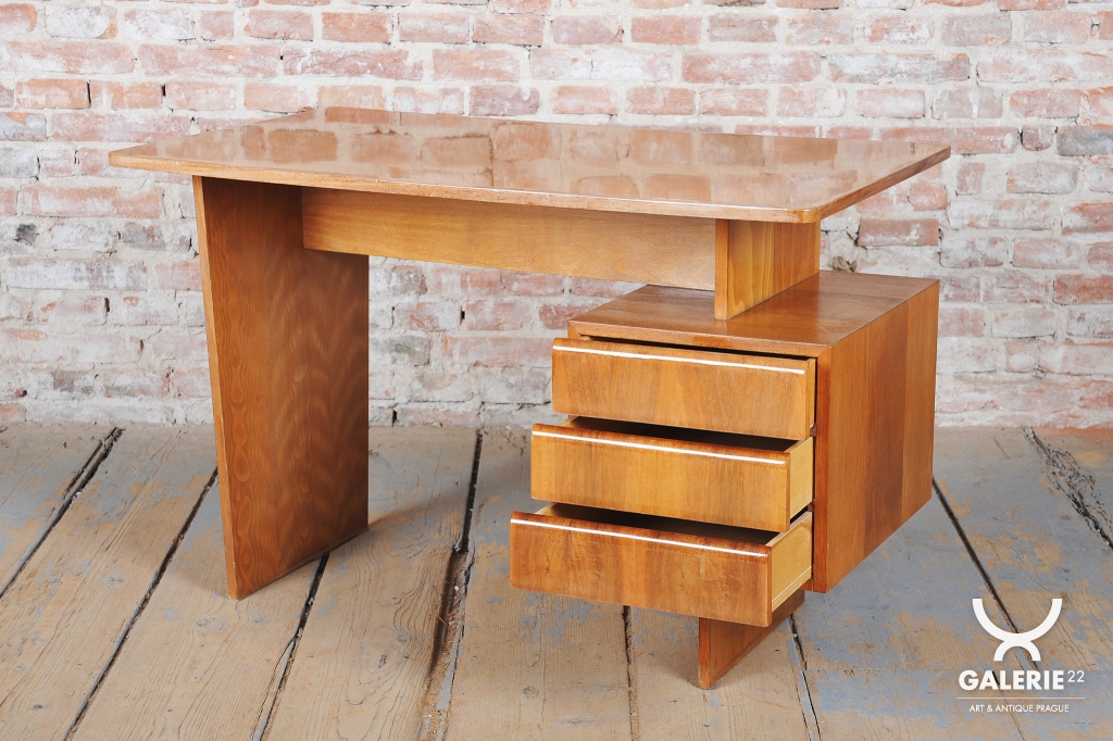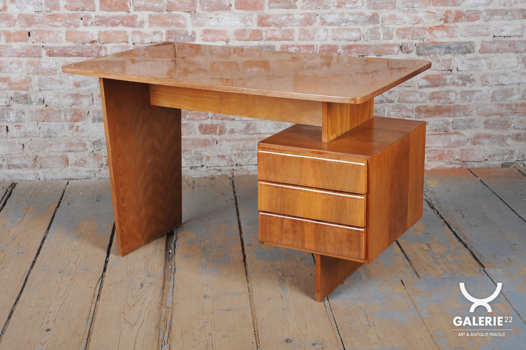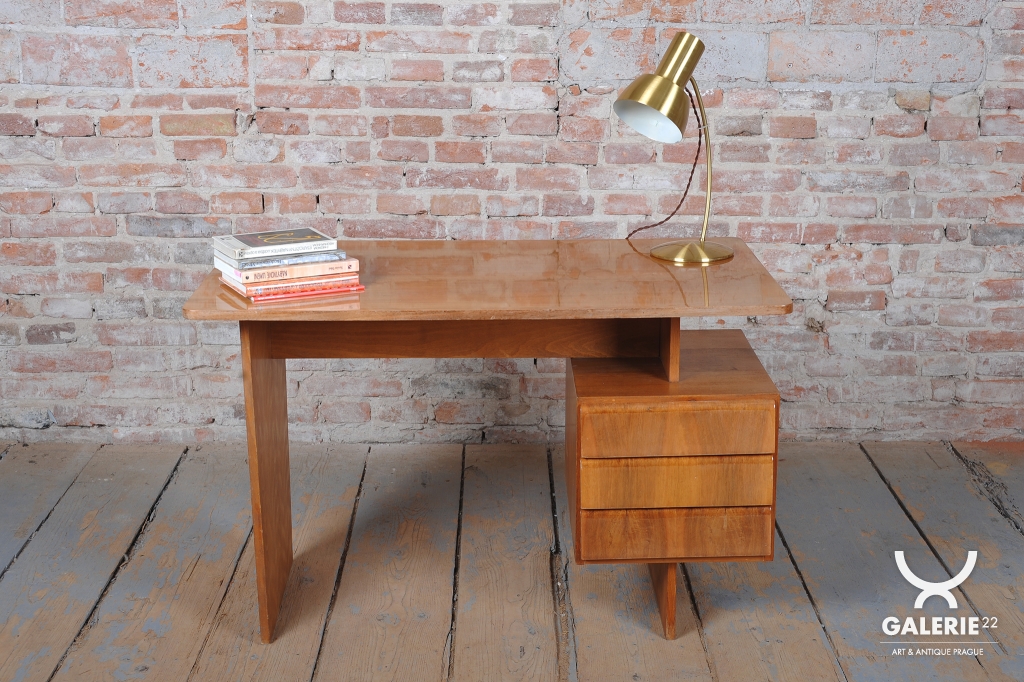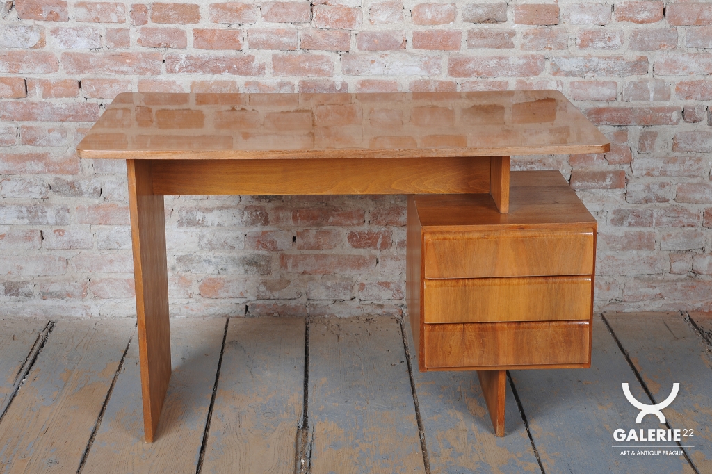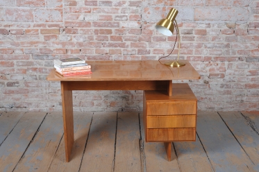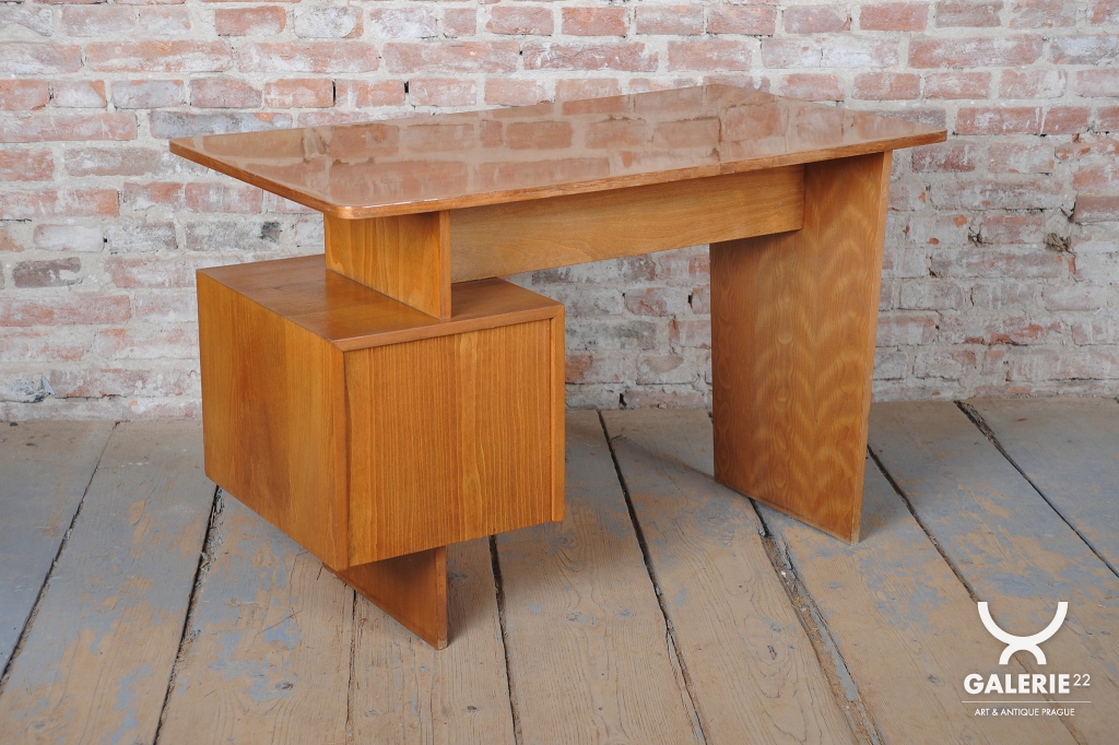 Tento psací stůl je vynikajícím reprezentantem československého poválečného designu 50. let 20. století, období známého jako Mid-Century Modern. Autorem návrhu je uznávaný architekt Bohumil Landsman, jehož tvorba je ceněna pro schopnost spojit funkčnost s vytříbenou estetikou a elegancí. Stůl se vyznačuje lehkou konstrukcí na kónických nohách a čistými geometrickými liniemi, které jsou pro Landsmanův rukopis typické.