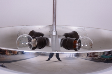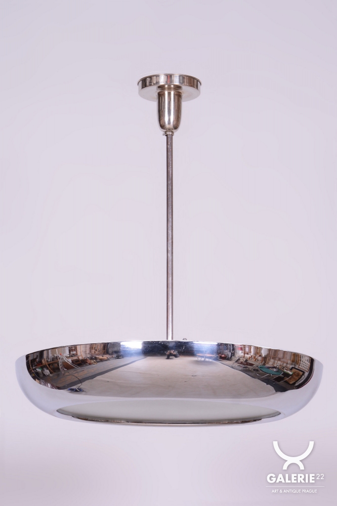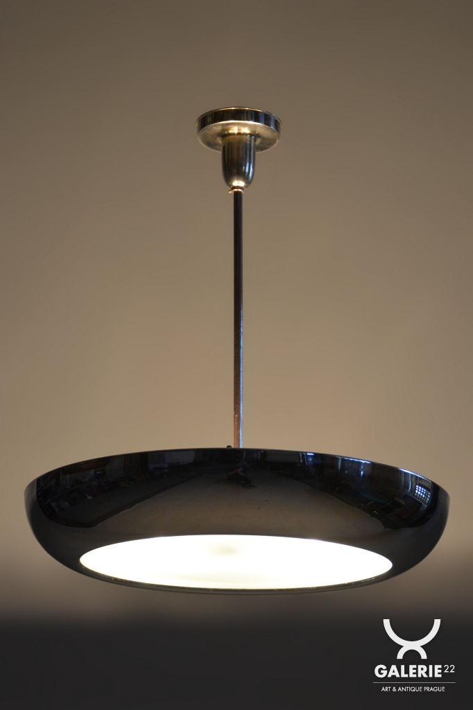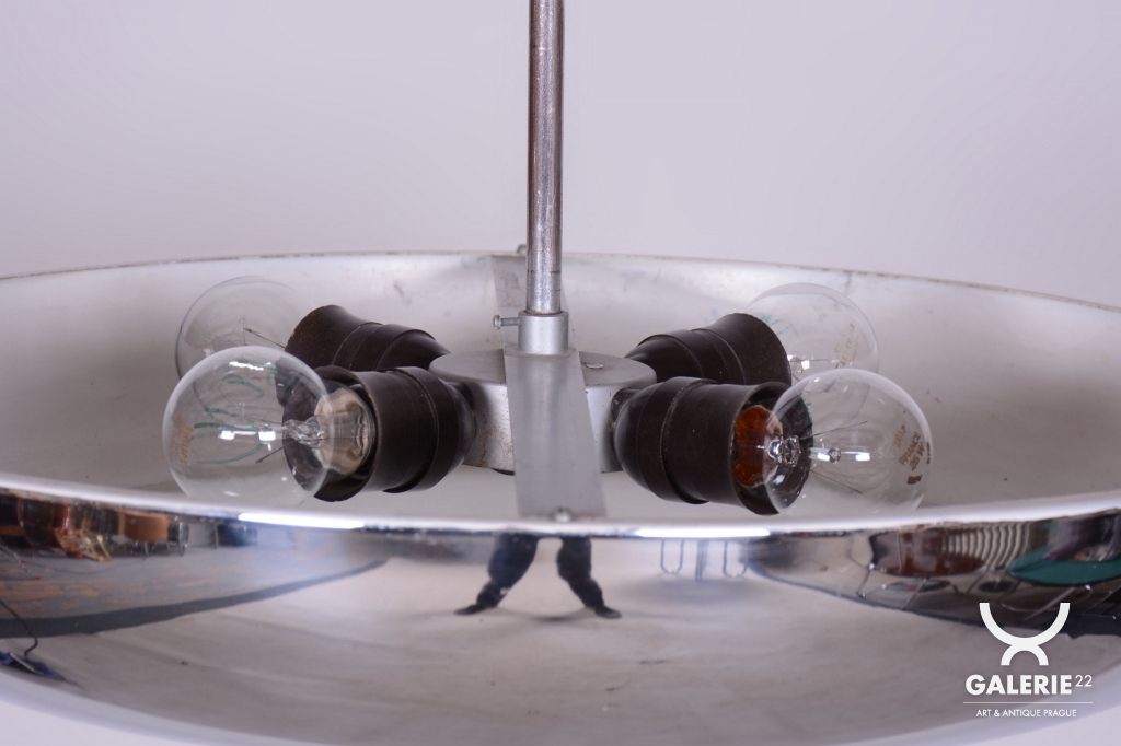 Tento ikonický lustr, UFO, je jedním z nejvýraznějších svítidel československého funkcionalismu a designu Bauhaus ze 30. let 20. století. Autorem tohoto nadčasového návrhu je uznávaný architekt a designér Josef Hůrka, jehož práce pro firmu Napako definovala moderní podobu meziválečného osvětlení. Lustr vyniká svou aerodynamickou formou a čistotou provedení, která i po téměř sto letech působí velmi moderně.