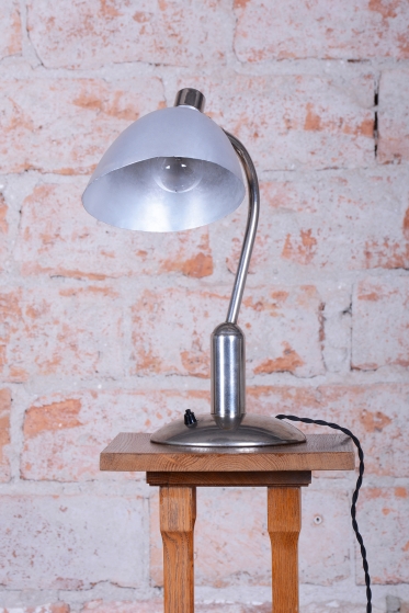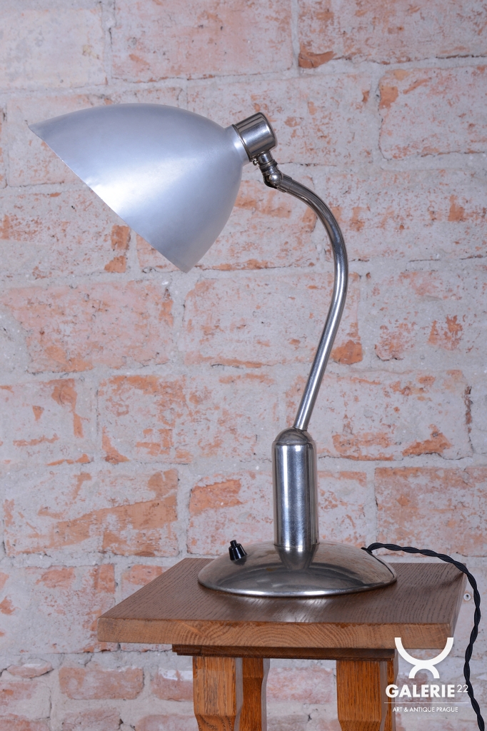 Tato ikonická pracovní stolní lampa typu LH 100 je mistrovským dílem československého designu éry Bauhaus. Pochází ze 30. let 20. století a je výsledkem spolupráce otce a syna – Franty a Jaroslava Anýžových. Zatímco Franta Anýž proslul jako geniální umělecký slévač a cizelér, Jaroslav vnesl do rodinné slévárny v pražských Holešovicích moderní vize. Tento model vyniká unikátním konstrukčním řešením, kdy je kulový kloub umístěn na vyvýšený sloupek. Díky tomu si lampa zachovává elegantní siluetu v jakékoli poloze a nepůsobí nikdy nepatřičně.