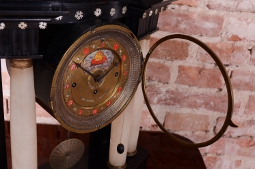Cizelované mosazné kyvadlo.