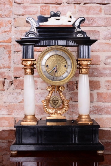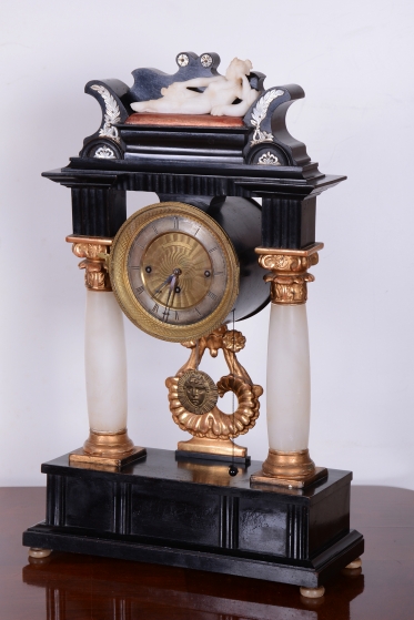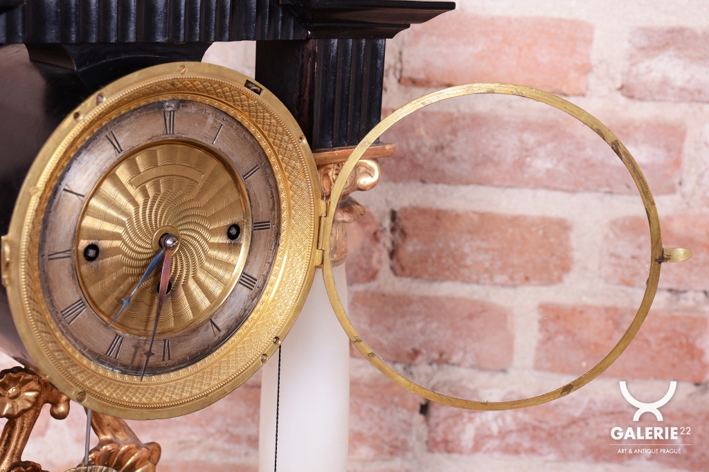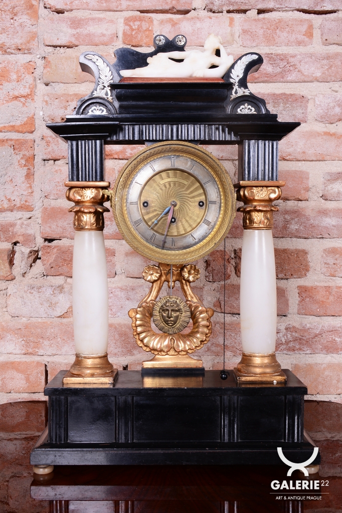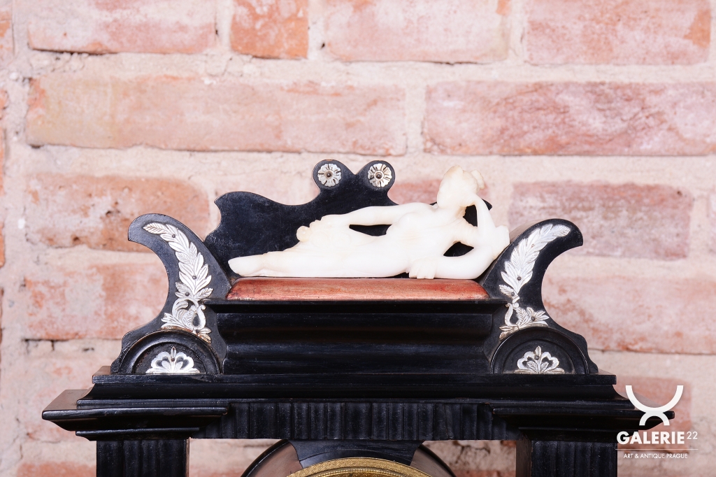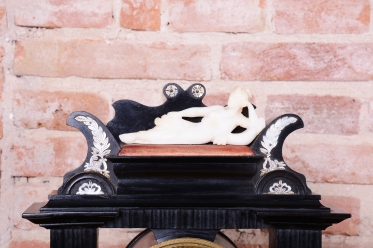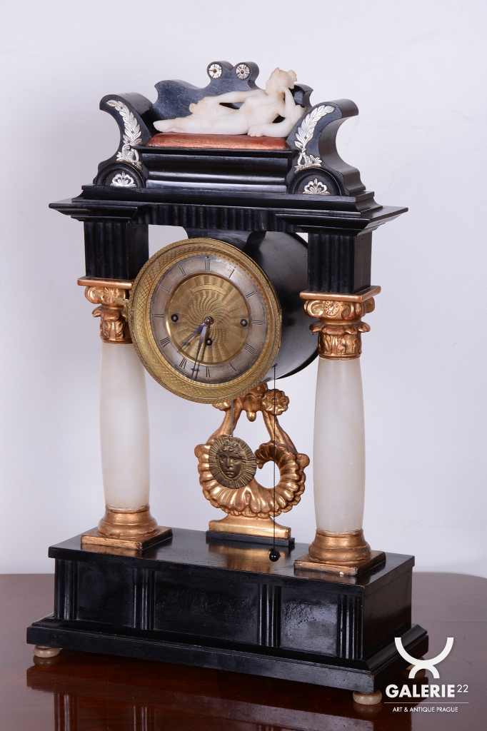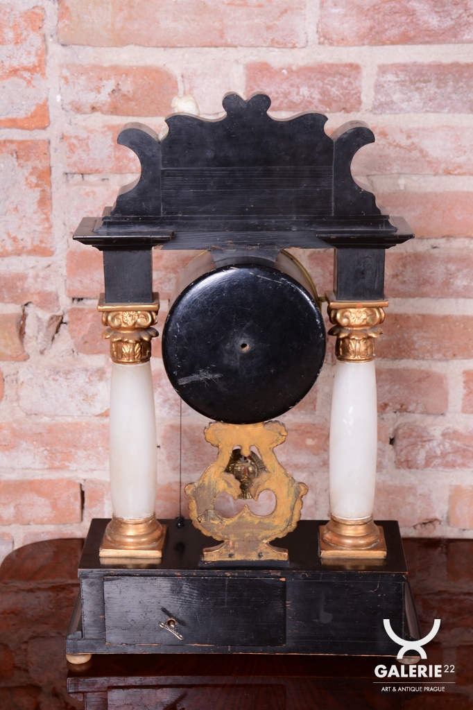 Sloupky, nožky a hlavní ozdoba z alabastru.