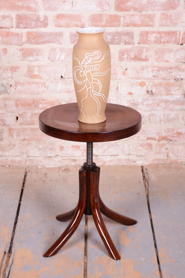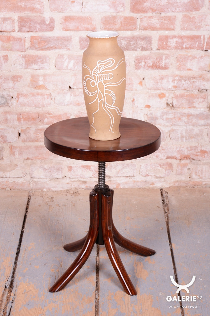 Tato klavírní stolička je elegantním i funkčním doplňkem z období československého Art Deca 30. let 20. století. Byla vyrobena ve světoznámém závodě Thonet v Bystřici pod Hostýnem, který byl v meziválečném období centrem inovací v ohýbaném nábytku. Stolička v sobě spojuje střídmou moderní estetiku s precizním technickým řešením, které bylo pro značku Thonet typické.