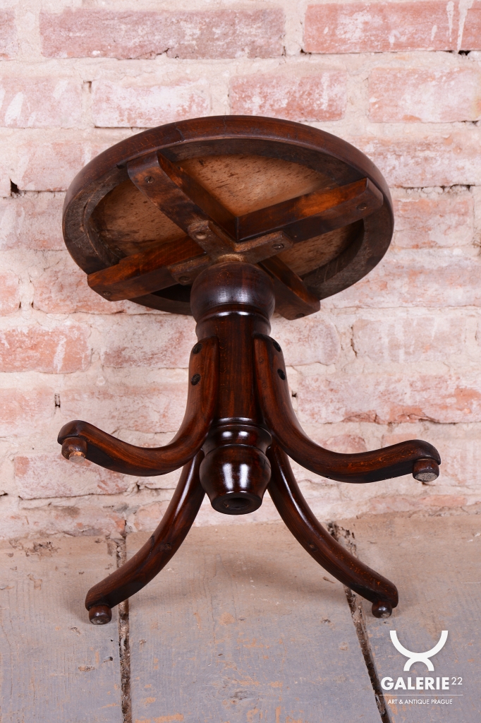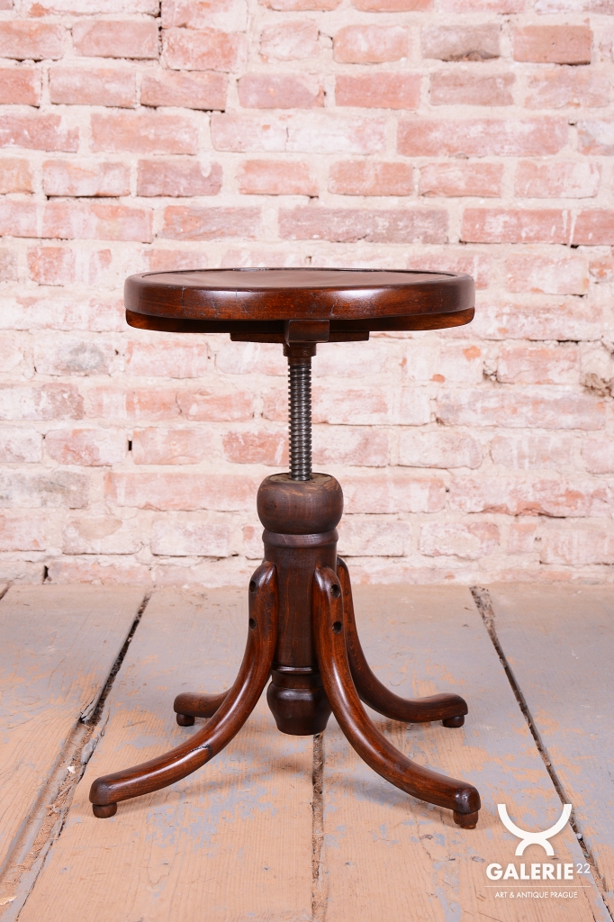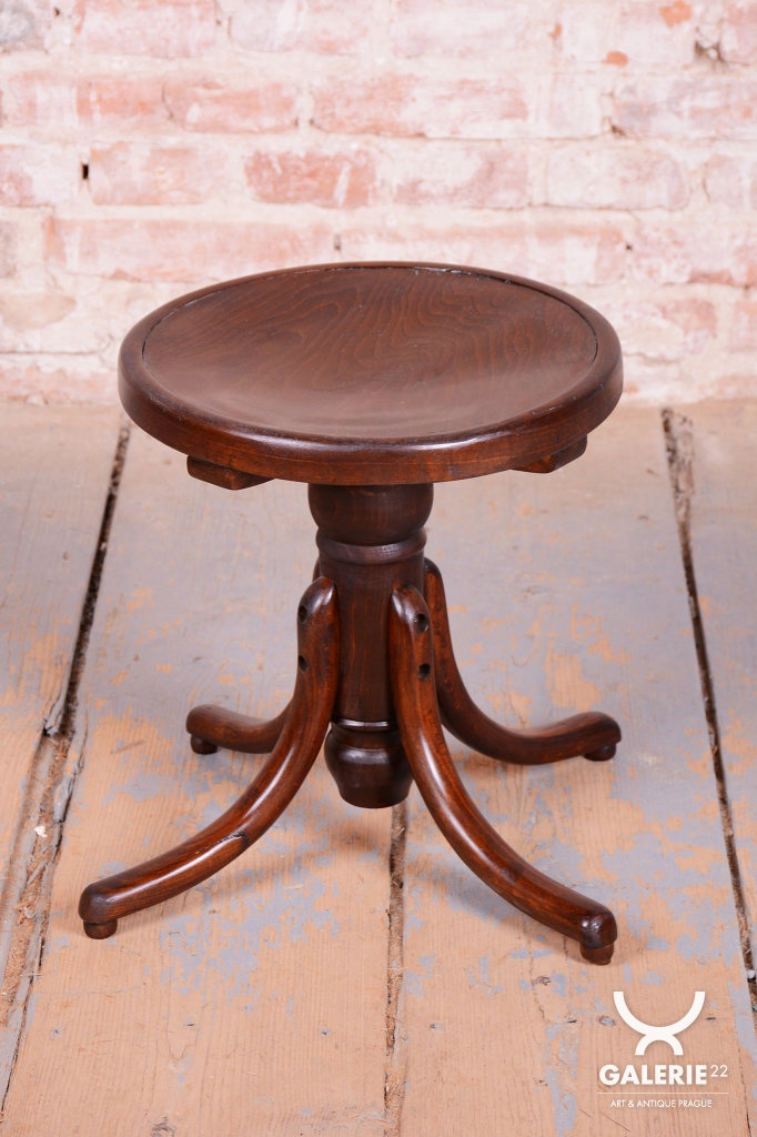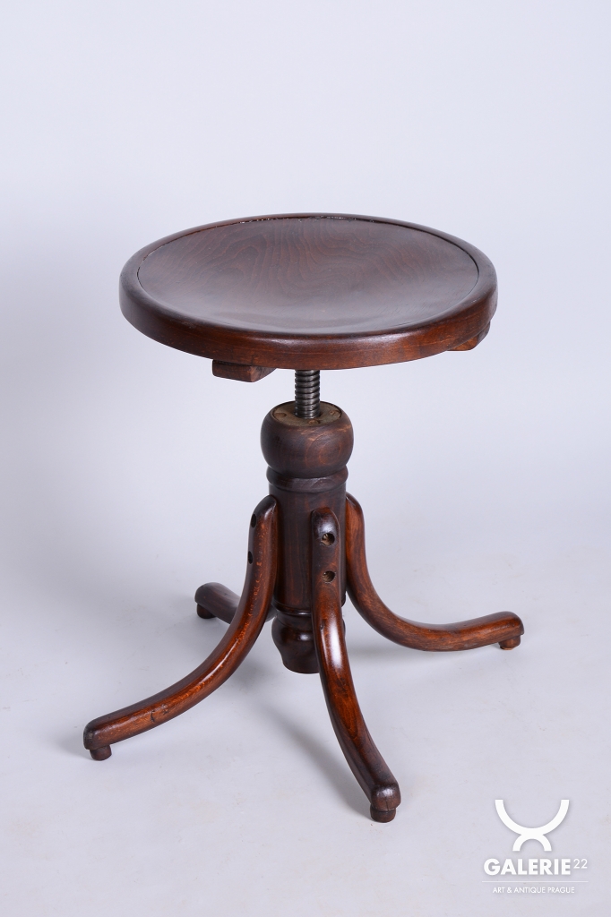 Tato klavírní stolička je elegantním i funkčním doplňkem z období československého Art Deca 30. let 20. století. Byla vyrobena ve světoznámém závodě Thonet v Bystřici pod Hostýnem, který byl v meziválečném období centrem inovací v ohýbaném nábytku. Stolička v sobě spojuje střídmou moderní estetiku s precizním technickým řešením, které bylo pro značku Thonet typické.