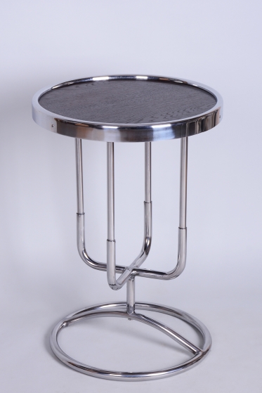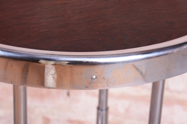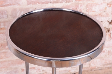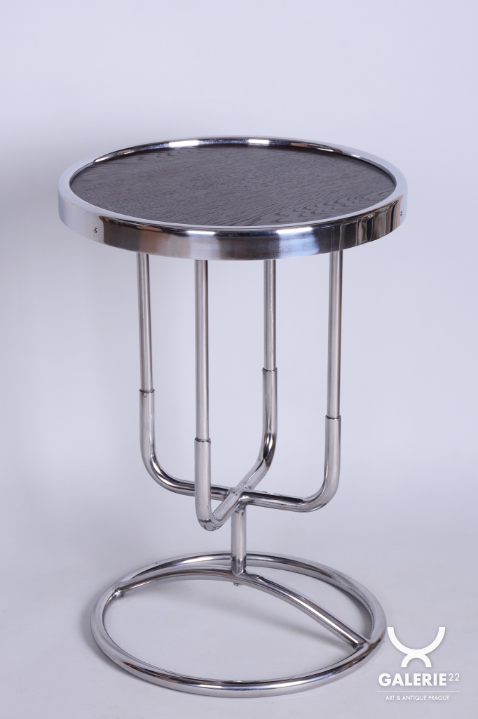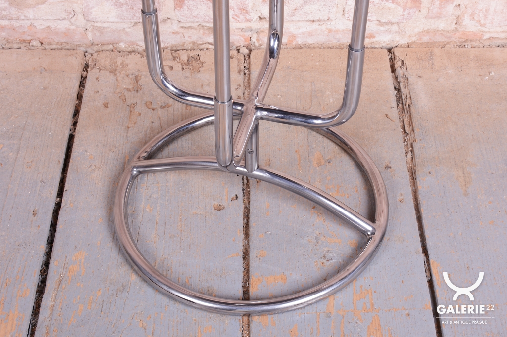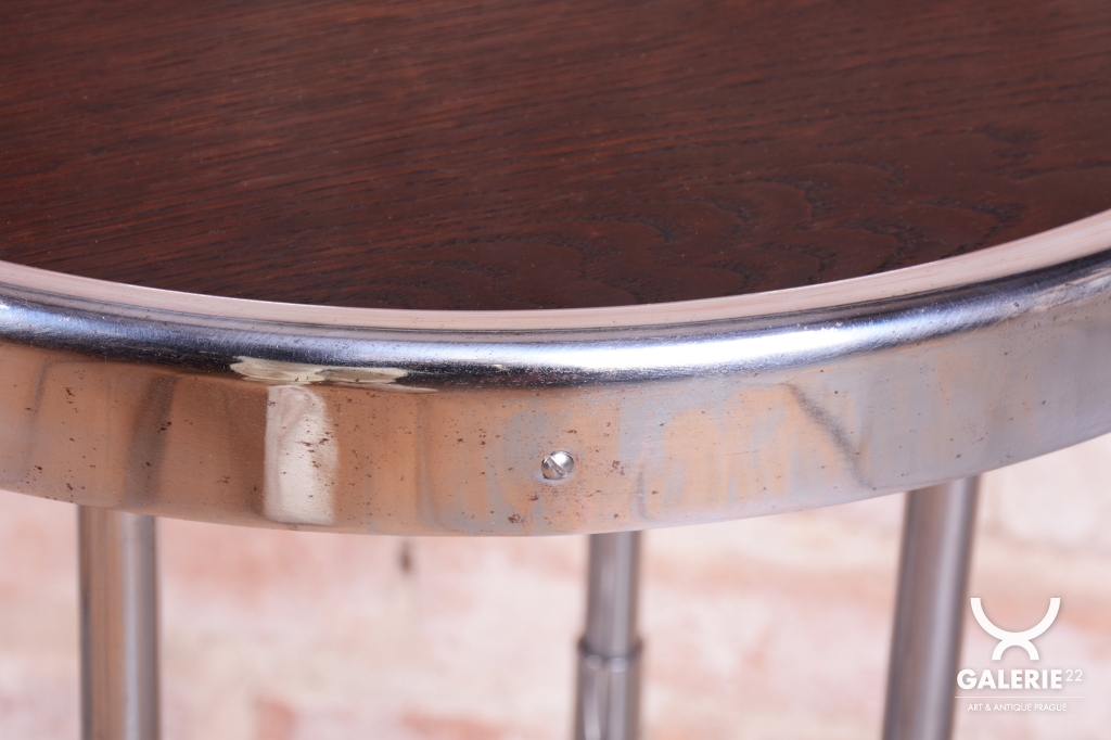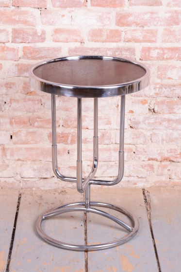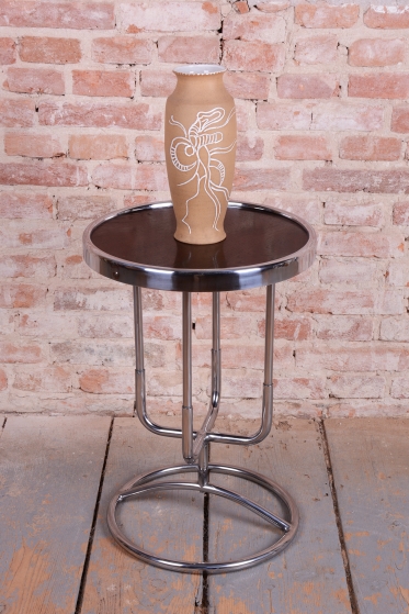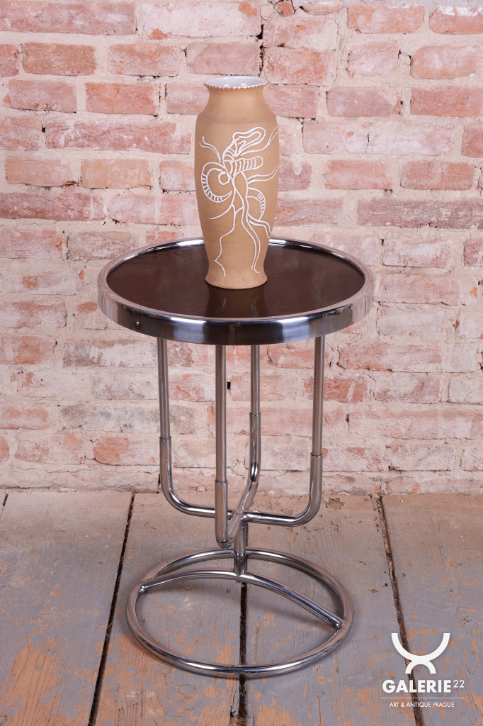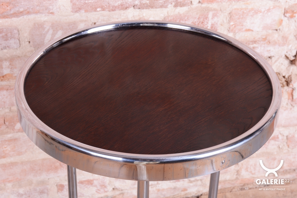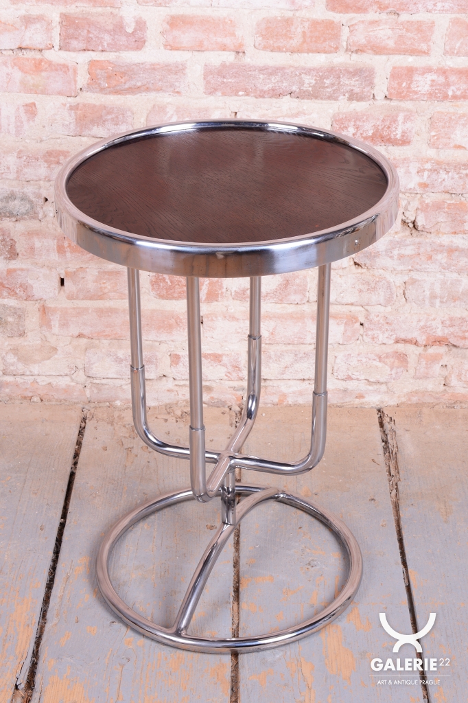 Tento odkládací stolek je ryzím zástupcem československého funkcionalismu a estetiky školy Bauhaus ze 30. let 20. století. V této éře se design zaměřoval na maximální účelnost a harmonii moderních průmyslových materiálů s elegantní formou. Stolek díky své subtilní, a přesto výrazné siluetě představuje ideální doplněk k trubkovým křeslům či jako samostatný prvek v minimalistickém interiéru.