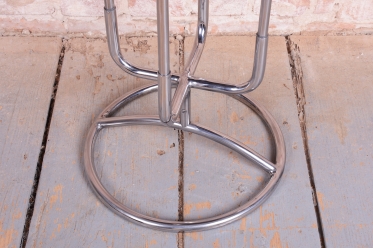Předmět prošel precizním procesem obnovy. Chromovaná ocelová konstrukce byla profesionálně vyčištěna, čímž získala zpět svůj zrcadlový lesk. Kontrastním prvkem je horní dřevěná černá deska, která byla nově lakována do vysokého lesku. Tato kombinace hluboké černé plochy a zářivého chromu je pro vrcholné období modernismu typická a dodává stolku luxusní, a přitom střídmý vzhled.