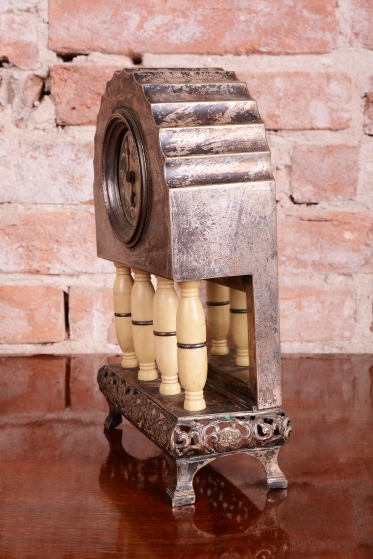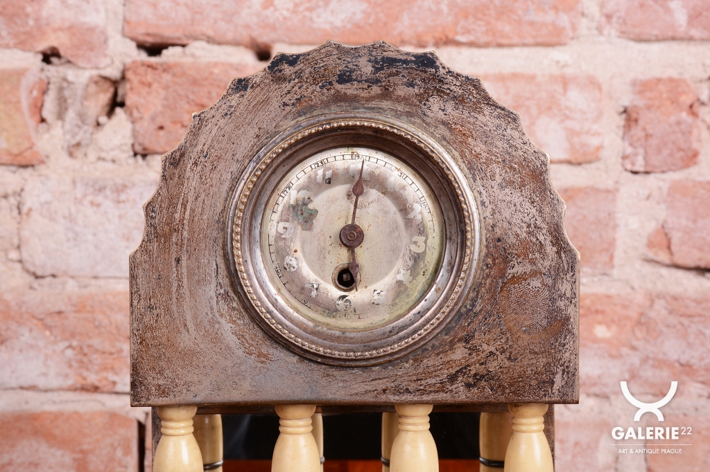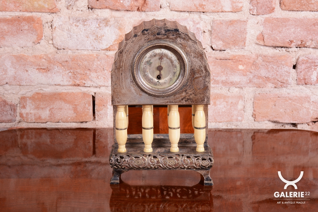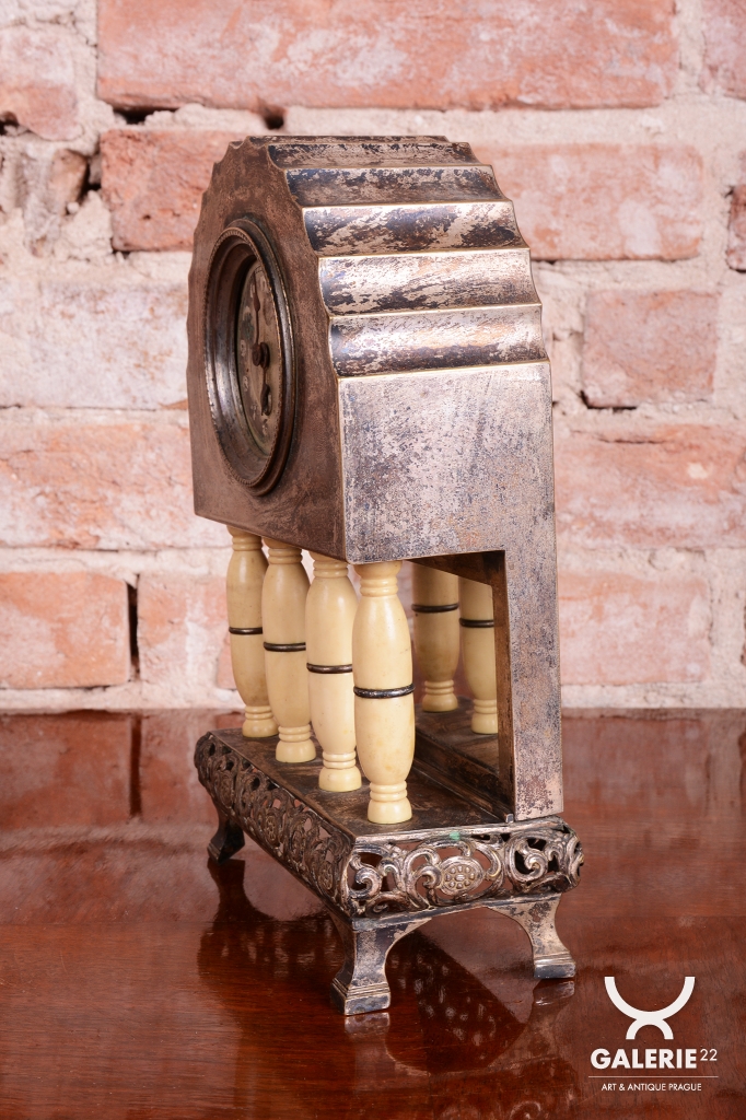 Ciferník i celé tělo hodin je ze stříbřené mosazi.