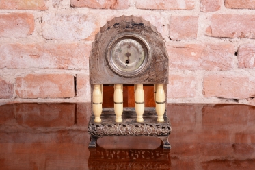 Hodiny jsou signovány - František (Franz) Bibus založil svou dílnu v Moravské Třebové v roce 1883. Původně začínal jako stříbrník, ale firma se rychle rozrostla v továrnu na luxusní kovové zboží (Alois Bibus & Sohn). Byli dvorními dodavateli pro Vídeň a jejich kvalita byla srovnatelná se slavnými vídeňskými dílnami.