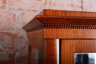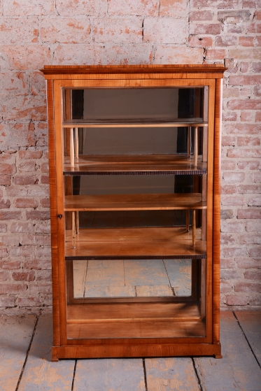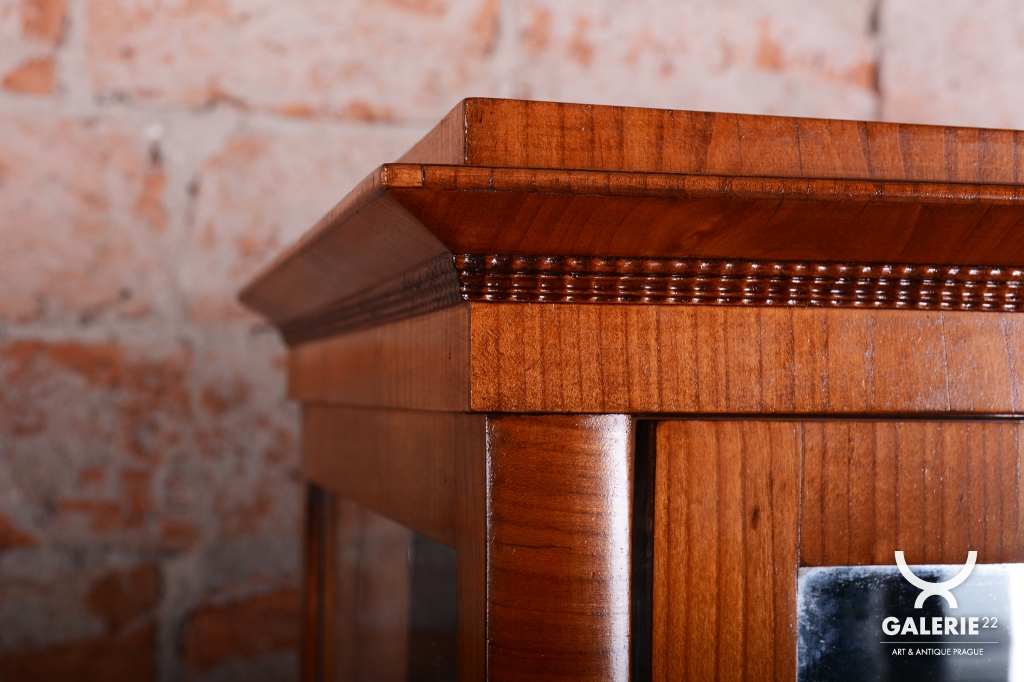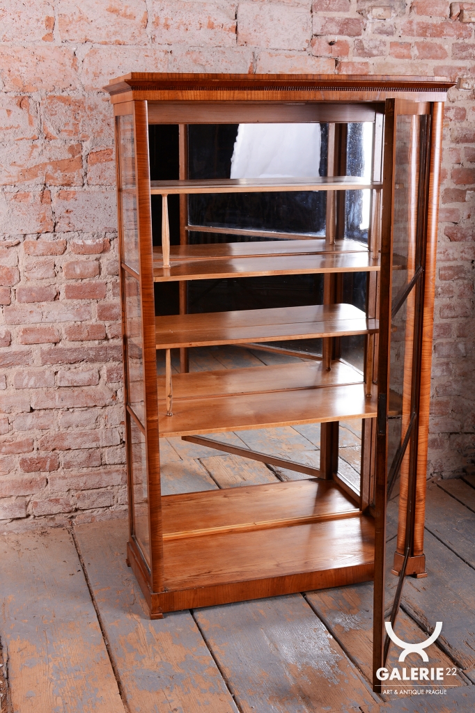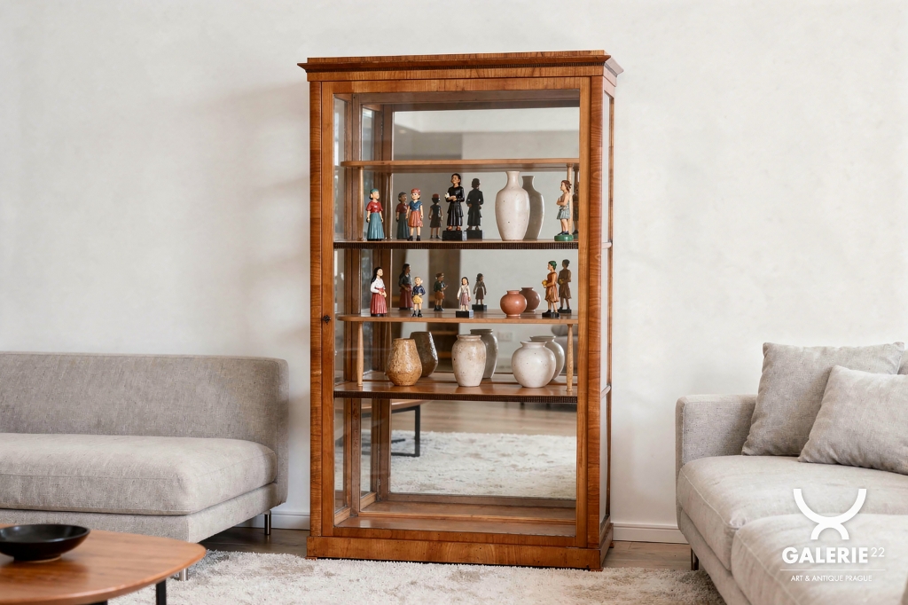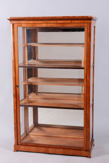 Tato vitrína je nádherným příkladem rakouského nábytkářství první poloviny 19. století, spadajícího do období Biedermeieru. Tento styl oslavoval klidnou krásu domova a kladl důraz na estetickou čistotu, což tato vitrína dokonale zrcadlí skrze své proporce a volbu ušlechtilých materiálů. Je navržena tak, aby v interiéru působila lehce a zároveň důstojně.