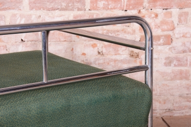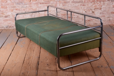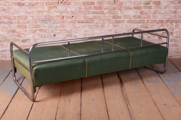Předmět prošel odborným restaurováním nosných částí. Konstrukce z trubkové chromované oceli byla profesionálně vyčištěna a vyleštěna do vysokého lesku, čímž získala zpět svůj charakteristický zrcadlový efekt. Unikátnost tohoto kusu spočívá v zachování historické podstaty – sofa disponuje zachovalou pružinovou jednodílnou matrací. Matrace je opatřena původní potahovou látkou, která byla pouze strojově vyčištěna. Na textilii jsou patrné viditelné známky používání,