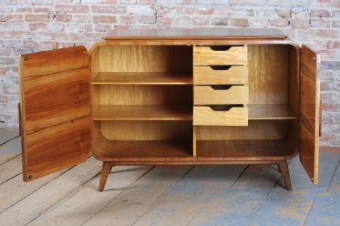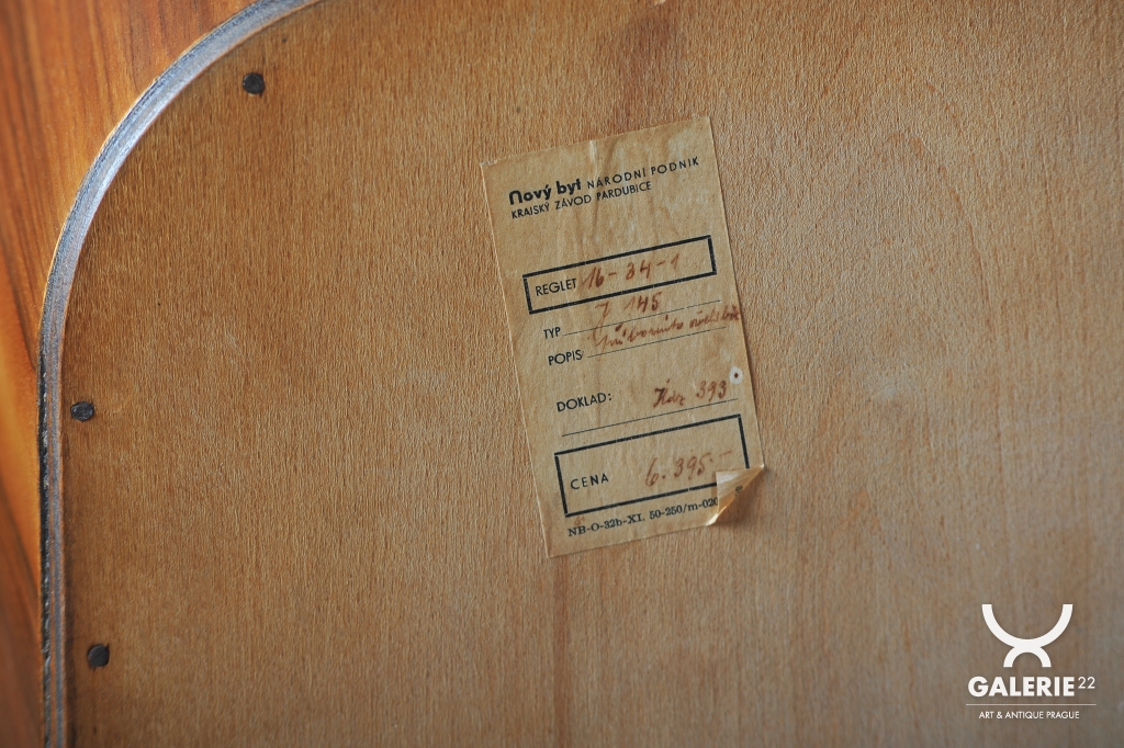 Tato skříňka typu bufet je ikonickým dílem československého meziválečného designu 30. let 20. století. Autorem návrhu je legendární architekt Jindřich Halabala, který jako hlavní designér Spojených UP závodů v Brně zásadně ovlivnil podobu moderního bydlení. Tento kus v sobě spojuje luxusní estetiku Art Deca s funkčností, která byla pro Halabalovu tvorbu a produkci UP závodů klíčová.