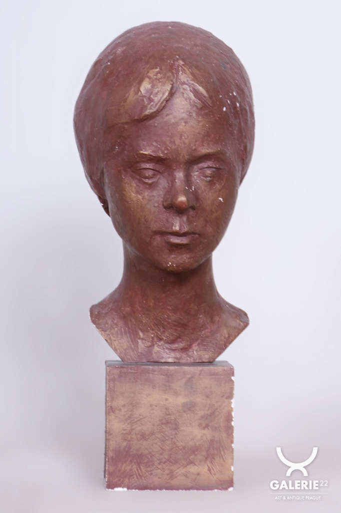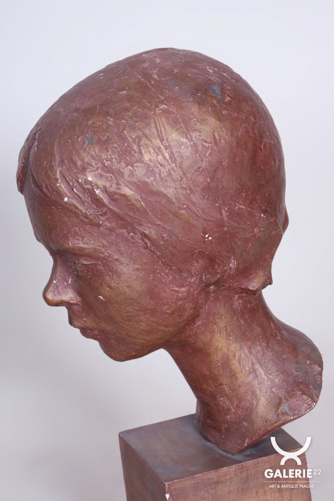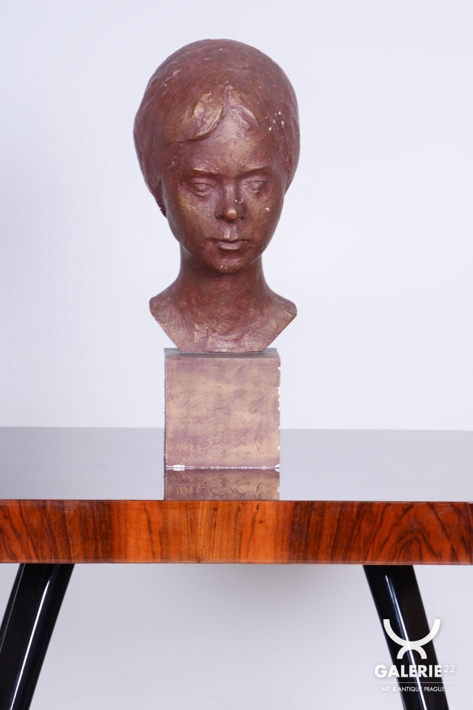 Due to its refined form and historical origin, this bust is an excellent statement piece for collectors of interwar art or as a luxury decorative detail for stylish interiors, libraries, or salons. It serves as a valuable record of the high standard of Czechoslovak figural creation from the interwar period.