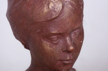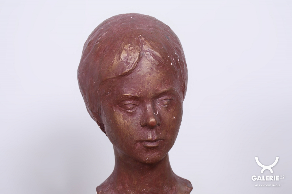This statuette in the form of a bust is an immensely elegant example of Czechoslovak decorative art from the early 20th century. Stylistically, it belongs to Art Deco, evident in the subtle stylization of features and the overall composition, which carries hints of both modernism and classical nobility. The portrait captures a young woman with a characteristic period hairstyle and a deep, contemplative expression, lending the sculpture a strong psychological charge and timeless aesthetics.