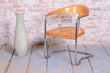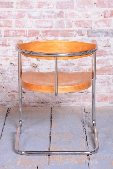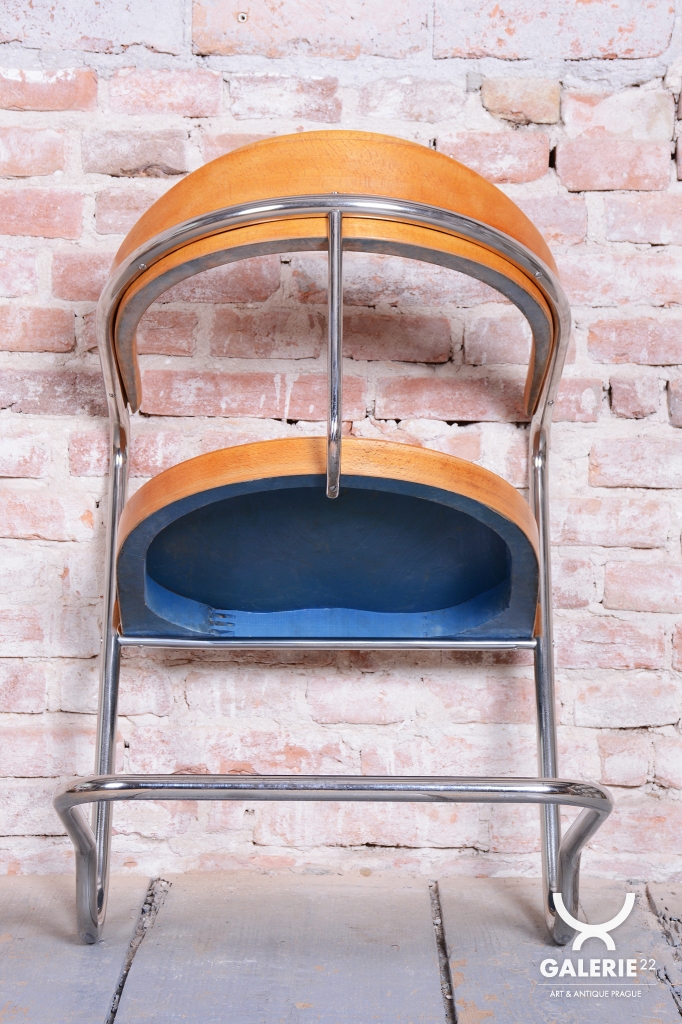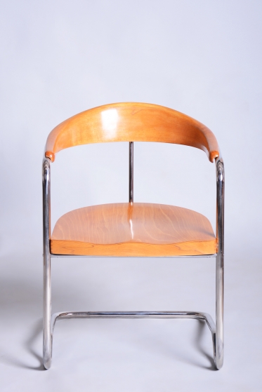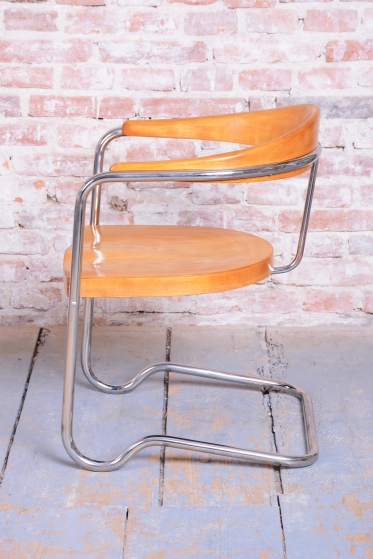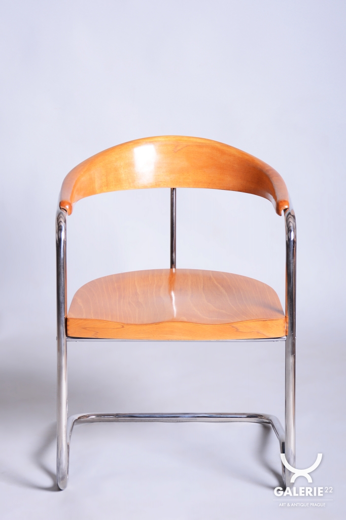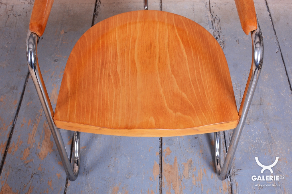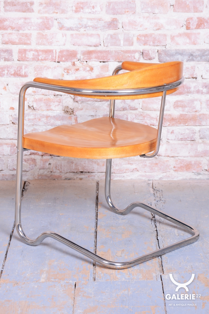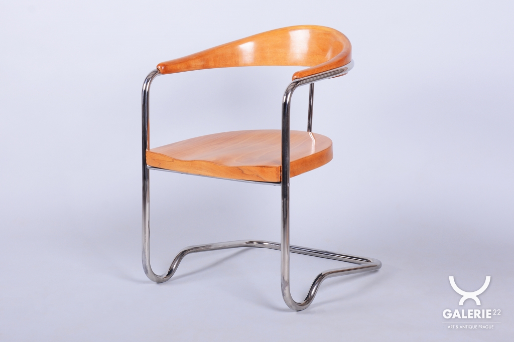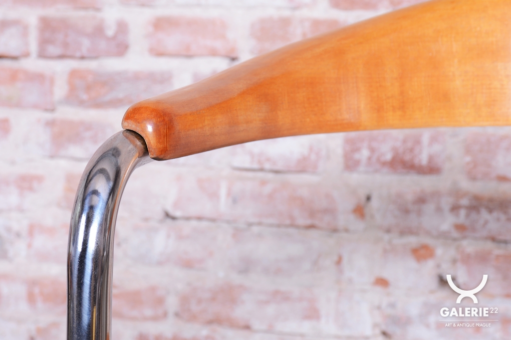 This elegant Bauhaus armchair originates from Czechoslovakia from the 1930s and is a creation by architect Ladislav Žák. The chair is characterized by its minimalist design and clean, functional lines, which are typical of the Bauhaus movement.