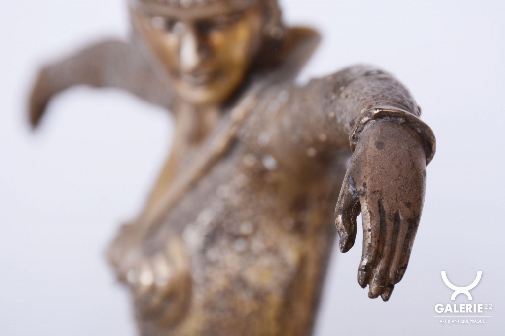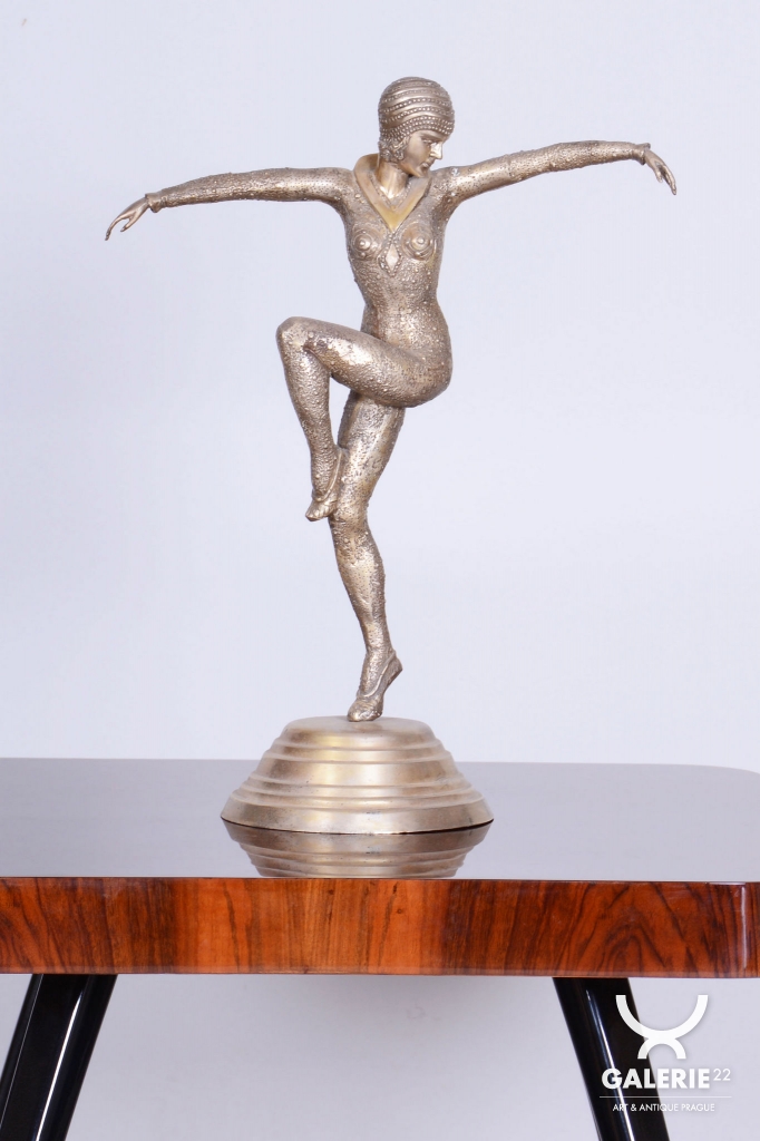 The sculpture is crafted from silvered composite metal, giving the material a luxurious, cool luster that perfectly highlights the stylized lines of the female form and the intricate details of the costume. Chipăruș work was deeply influenced by the Ballets Russes, archaeological discoveries in Egypt (especially after the opening of Tutankhamuns tomb), and the rise of modern dance. This dancer embodies that very combination of exoticism and modernity that makes Chipăruș creations icons of the visual style of interwar Paris.