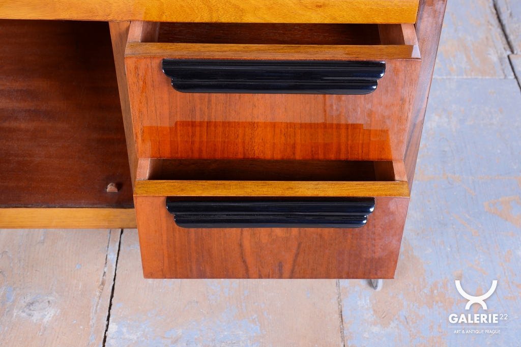 This luxurious mobile serving cart in the Art Deco style is an iconic piece from Czechoslovakia from the 1920s. It embodies the elegance and functionality typical of this period.