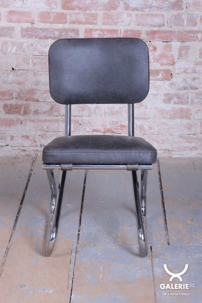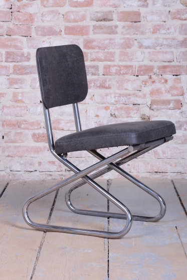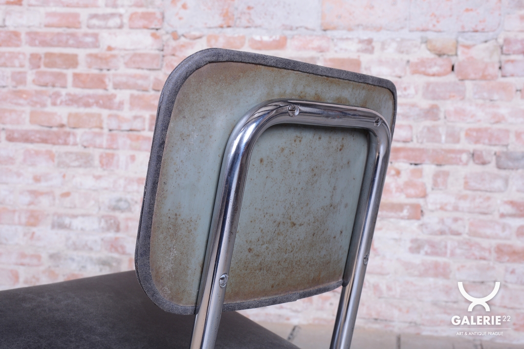The frame is crafted from tubular chrome-plated steel, which has been professionally cleaned and shines like new. The chair features new upholstery executed according to the original design, ensuring an authentic look and maximum comfort.