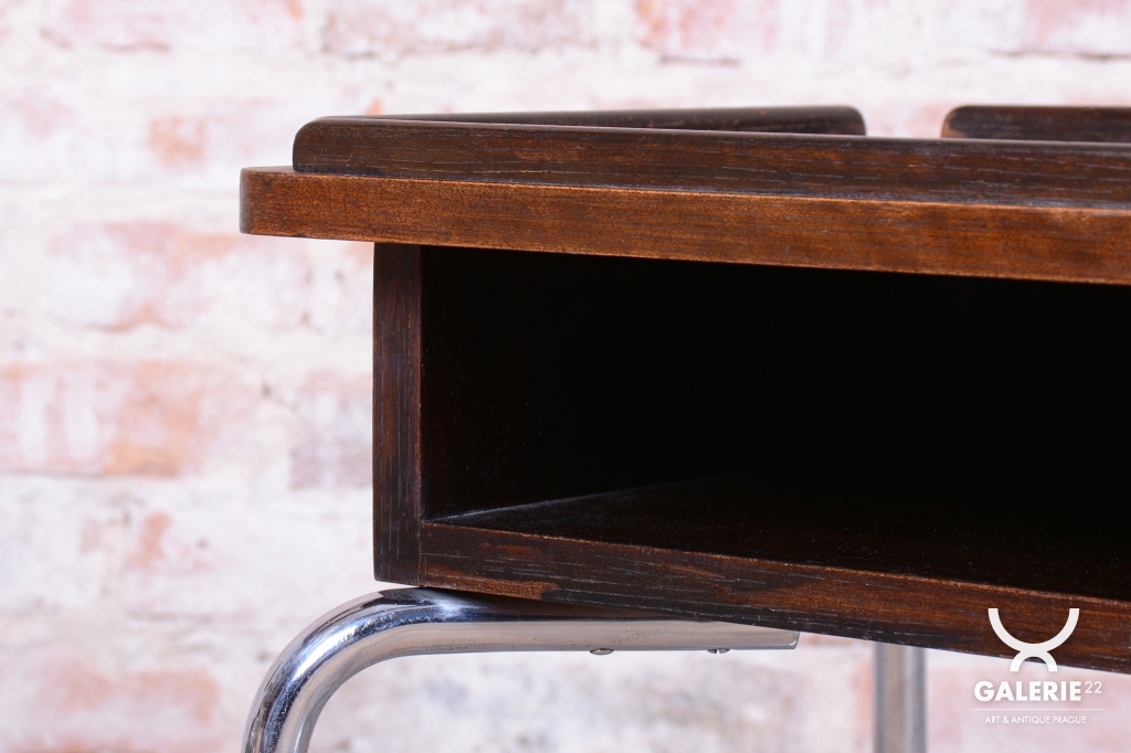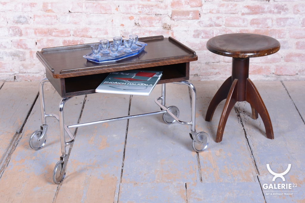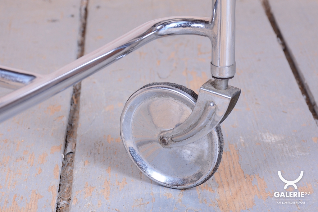 This functionalist Bauhaus-style serving cart originates from Czechoslovakia from the first half of the 20th century and is a creation of the renowned Robert Slezák Factories.