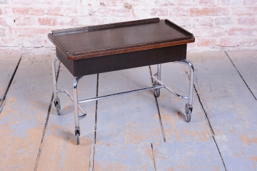 Thanks to its swivel casters, the cart is mobile and fully functional, ideal for serving or as an elegant side table with storage space (open shelf) in your interior. The entire cart has undergone restoration and is ready for immediate use.