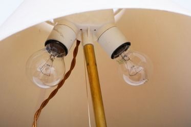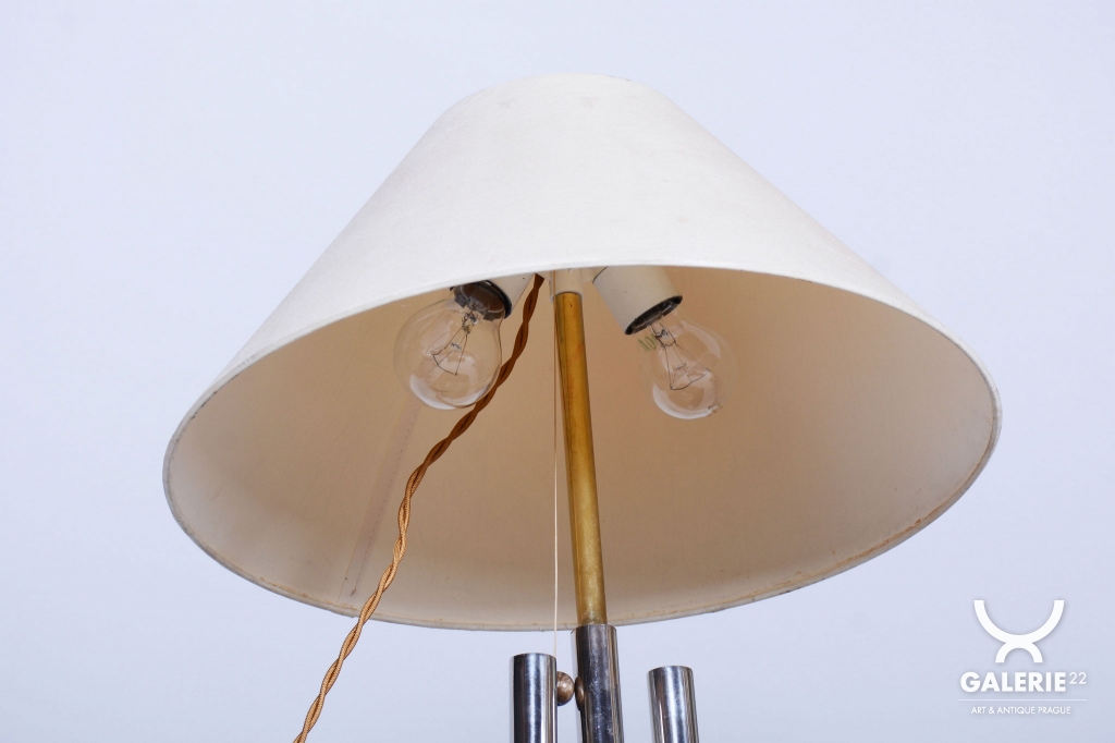 The item has undergone a complete revitalization, including new professional wiring that meets current safety standards. The lamp is equipped with two E27 bulb sockets, allowing for high light output and flexibility in choosing lighting intensity. This piece is an ideal choice for discerning design enthusiasts seeking an original and functional element for a representative living room, hall, or bedroom.