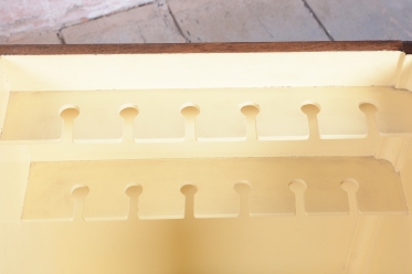 Vnitřní uspořádání je chytře řešeno pro servírování nápojů; kombinuje původní lakování s elegantními černými plochami z lesklého bakelitu, které jsou odolné proti vlhkosti.