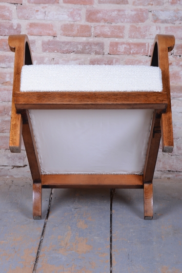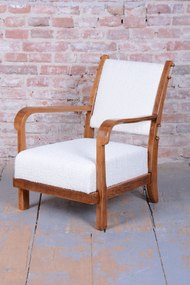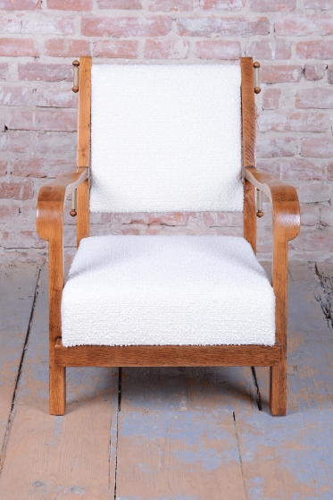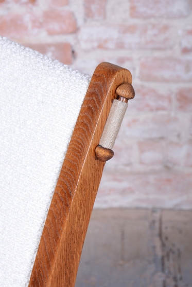 Celý set prošel procesem pečlivého restaurování. Stabilní konstrukce z masivního dubu zajišťuje dlouhou životnost a pevnost. Původní politura dřeva byla citlivě oživena, aby vynikla přirozená krása a hloubka dubového masivu. Souprava byla nově profesionálně čalouněna přesně podle původní předlohy, což jí navrací její autentický vzhled a eleganci. Tento set je ideální volbou pro ty, kteří hledají reprezentativní a pohodlné posezení s nezaměnitelným historickým charakterem.