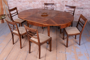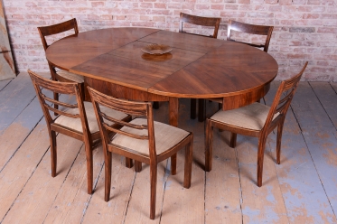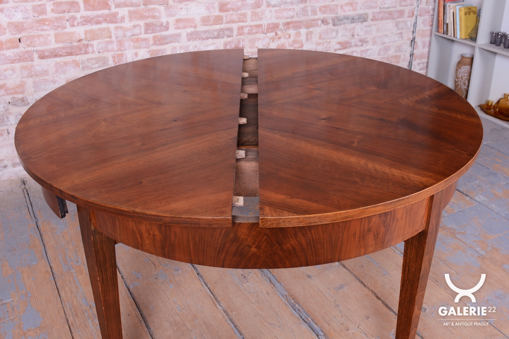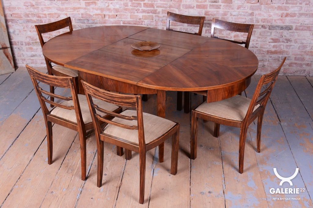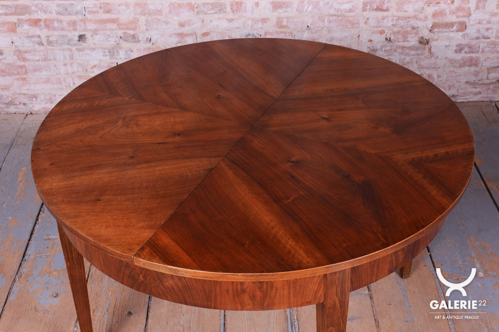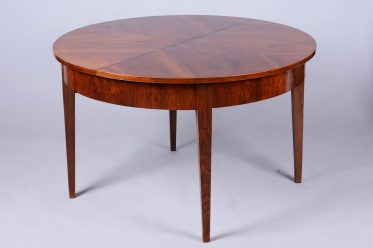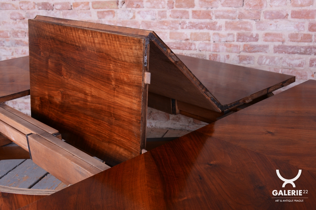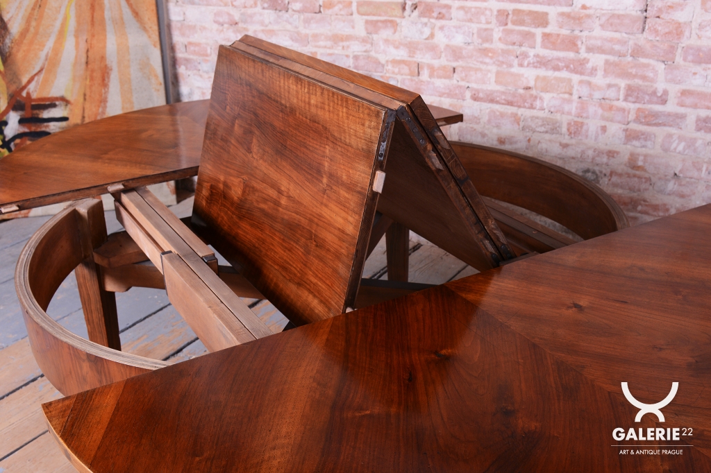 Tento výjimečný kulatý jídelní stůl je autentickým příkladem vytříbeného designu období Art Deco z 20. let 20. století. Stůl pochází z Československa a reprezentuje špičkovou kvalitu tehdejší nábytkářské produkce, která kombinovala eleganci s vysokou funkčností.