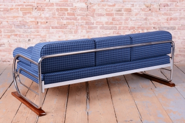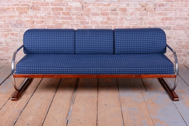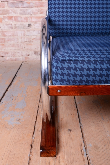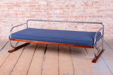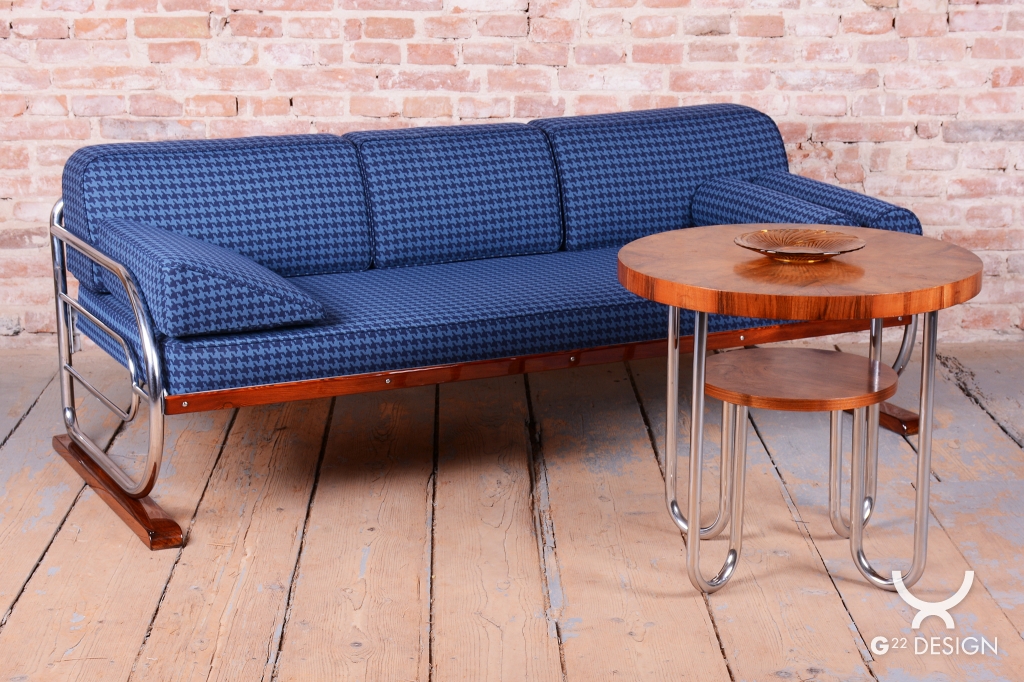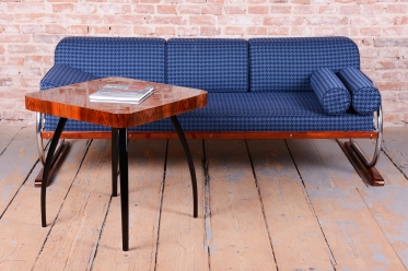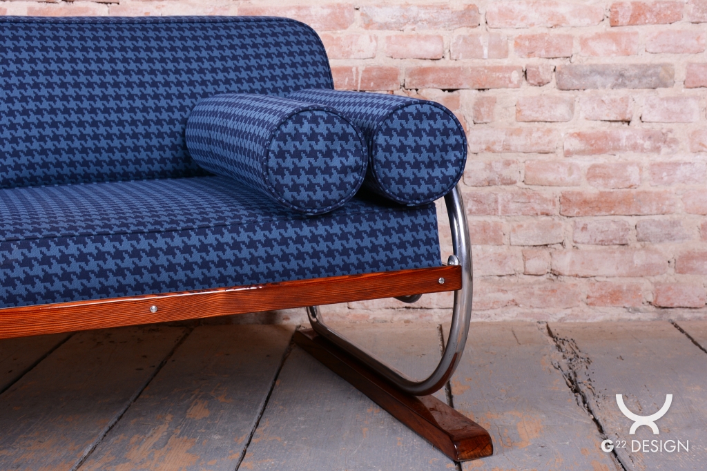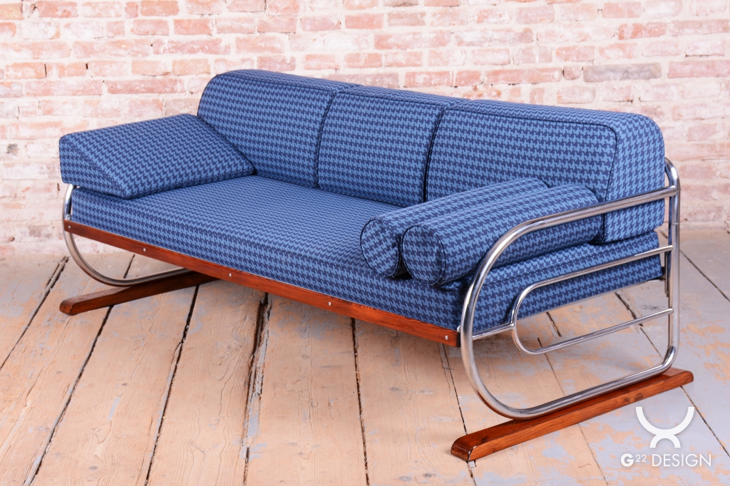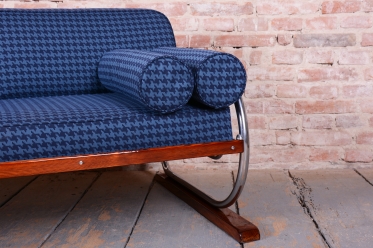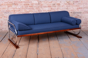 Tato elegantní pohovka ve stylu Bauhaus z 30. let 20. století je výjimečným příkladem československého funkcionalistického designu. Byla vyrobena renomovanými Slezákovými závody a prošla pečlivou renovací, aby získala zpět svou původní krásu.