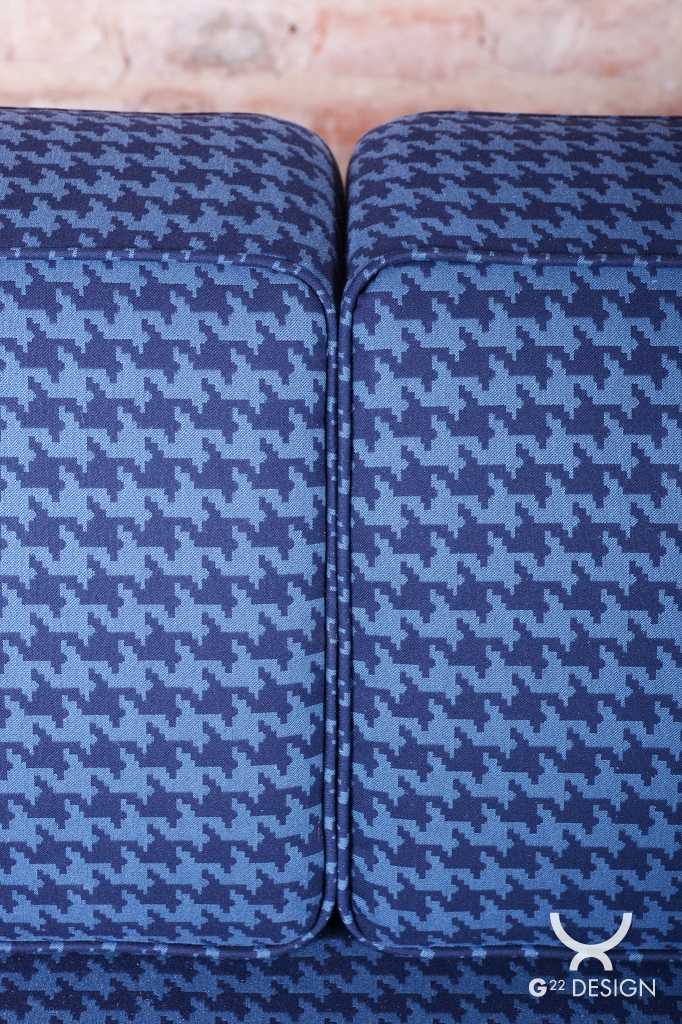 Pohovka je mimořádně praktická, určená jak k sezení, tak i k ležení. Navíc je možné ji rozmontovat na díly, což usnadní stěhování i do hůře přístupných prostor. Má nové profesionální čalounění s dobovou potahovou látkou se vzorem kohoutí stopy, což zaručuje autentický vzhled a dlouhou životnost.