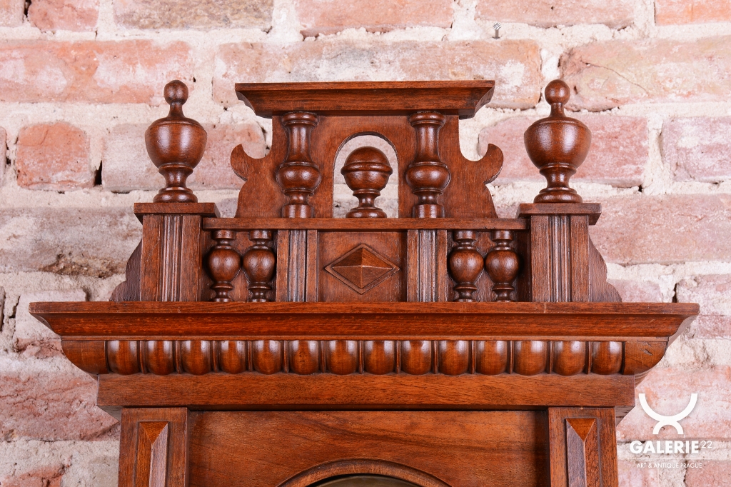 Bohatě řezané tělo hodin, včetně koruny.