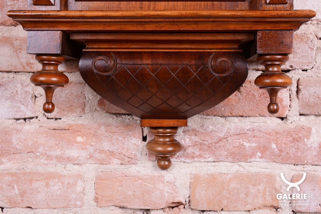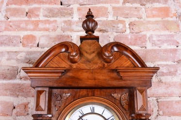 Bohatě vyřezávané tělo hodin, včetně koruny.