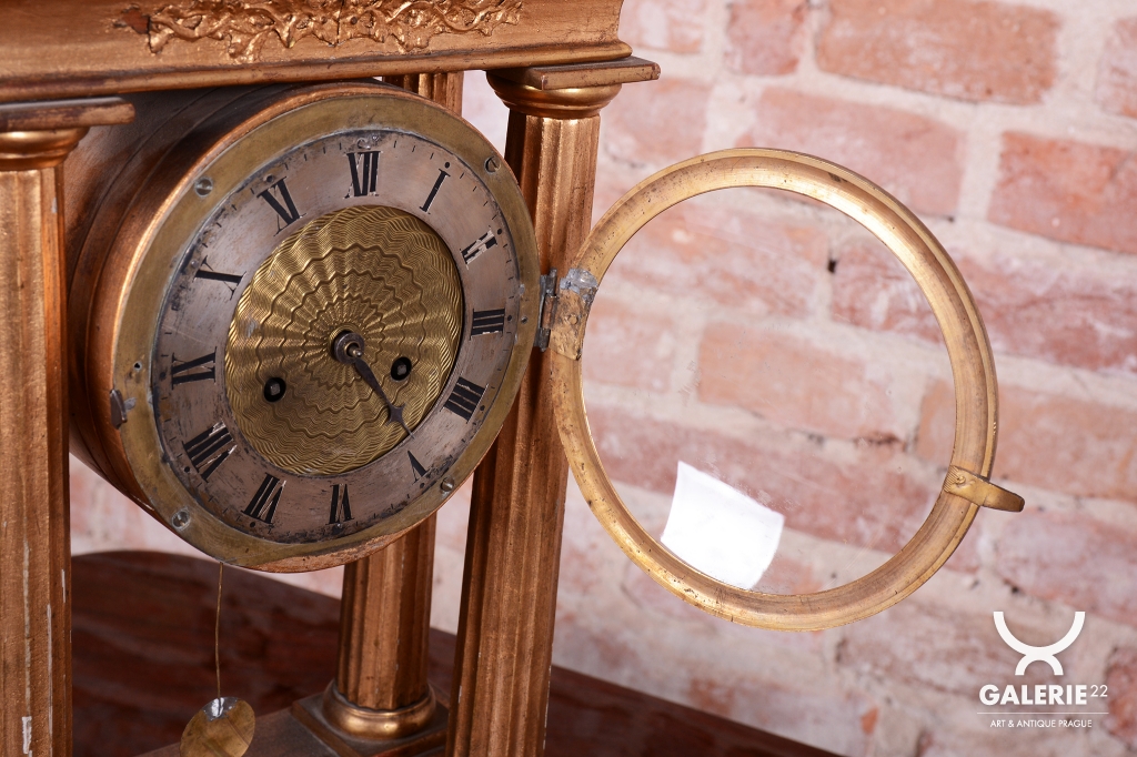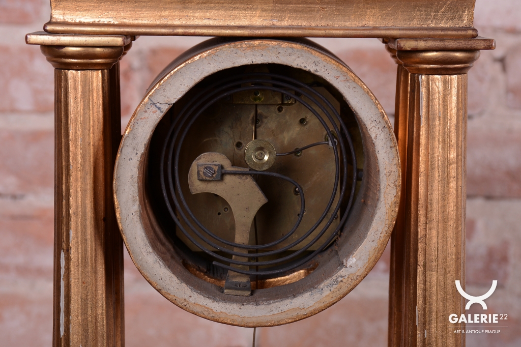 Cizelovaný ciferník, rámeček + kyvadlo - mosaz.