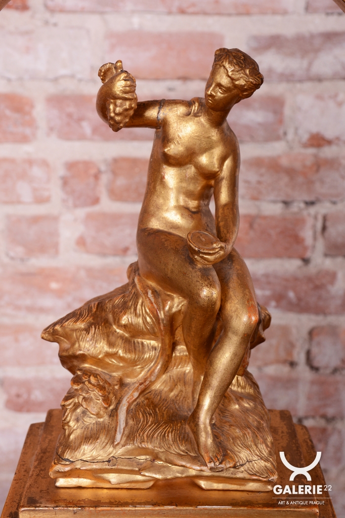 Polychromovaná dřevěná skříňka zlacená plátkovým zlatem.