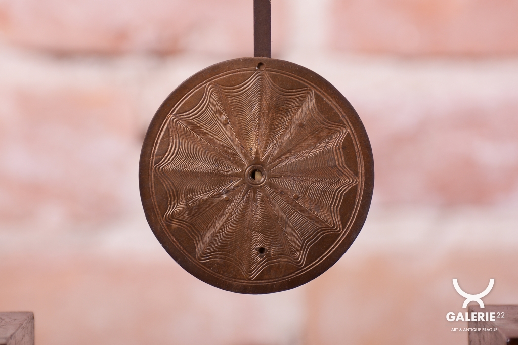 Cizelované kyvadlo a ciferník - mosaz.