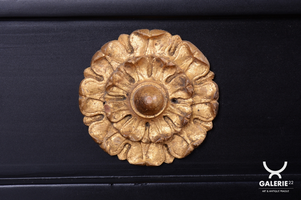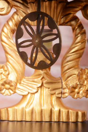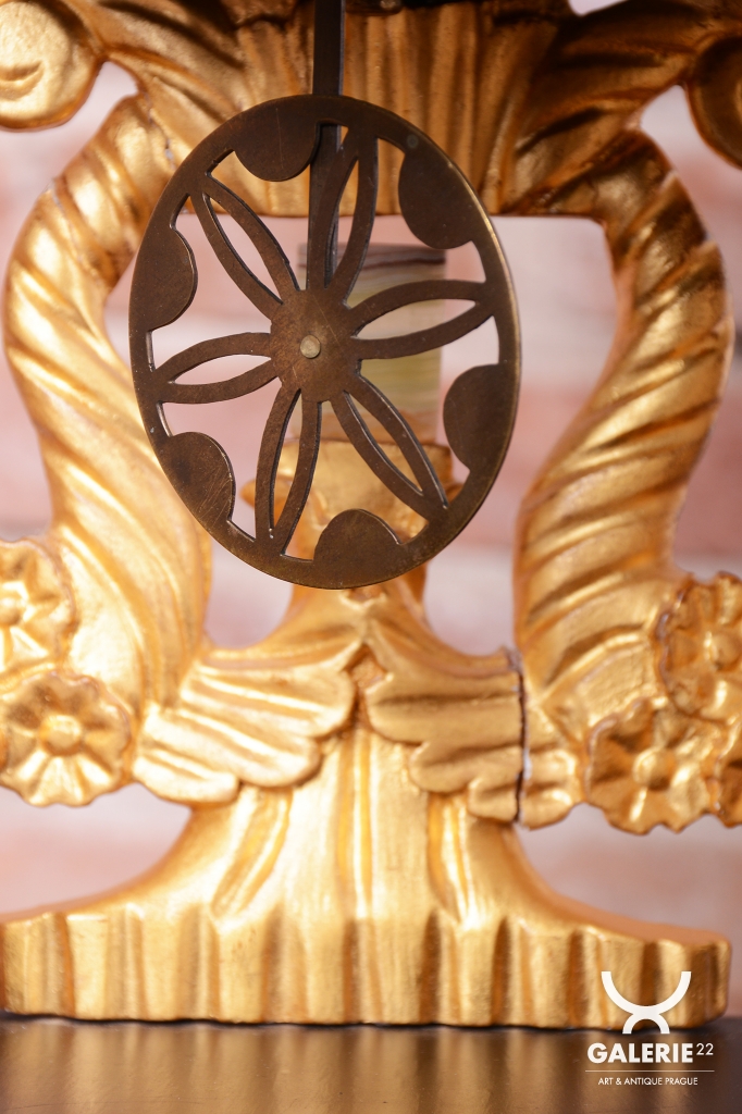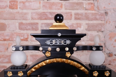 Ozdoby polychrom, zlacené plátkovým zlatem a perletí.