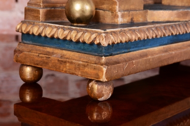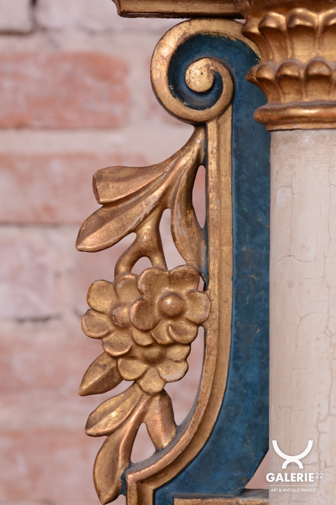 Polychromovaná skříňka a zdobení, zlacené plátkovým zlatem.