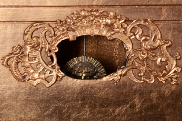 Polychromovaná skříňka zlacená plátkovým zlatem.