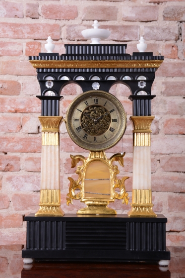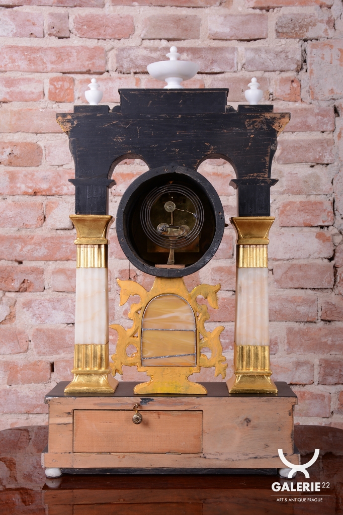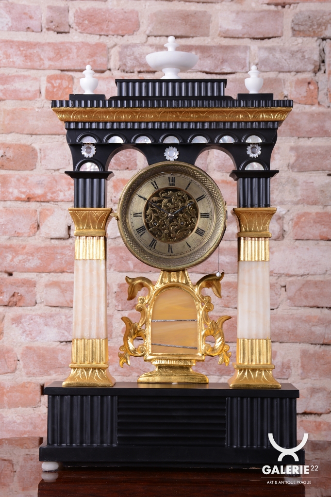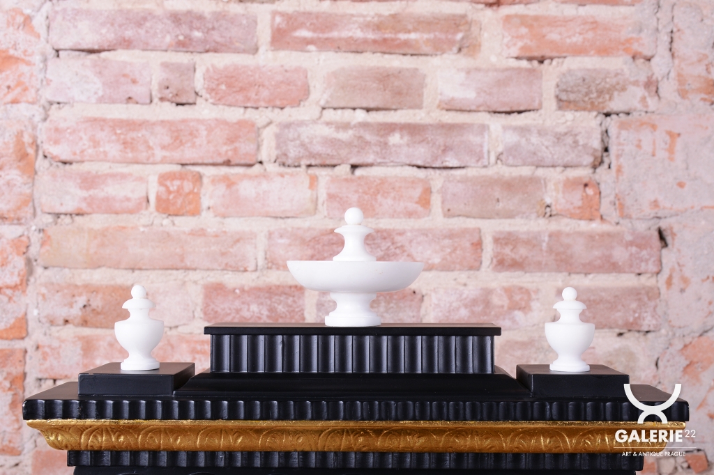 Sloupky a hlavní ozdoba a ozdoby na vrchní římse jsou z Alabastru. Zvláštnost je použití 3 různých barev