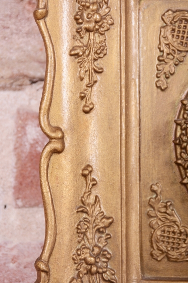 Polychromovaná skříňka zlacená plátkovým zlatem.