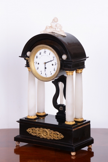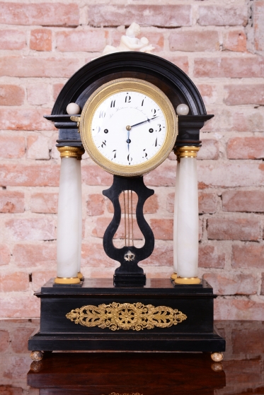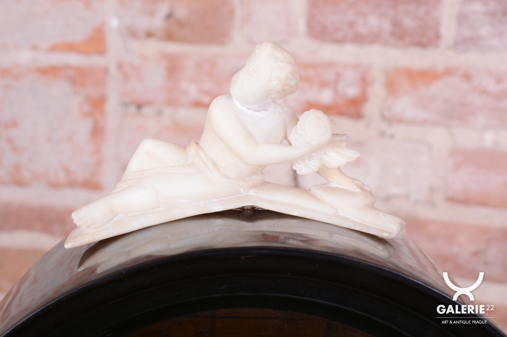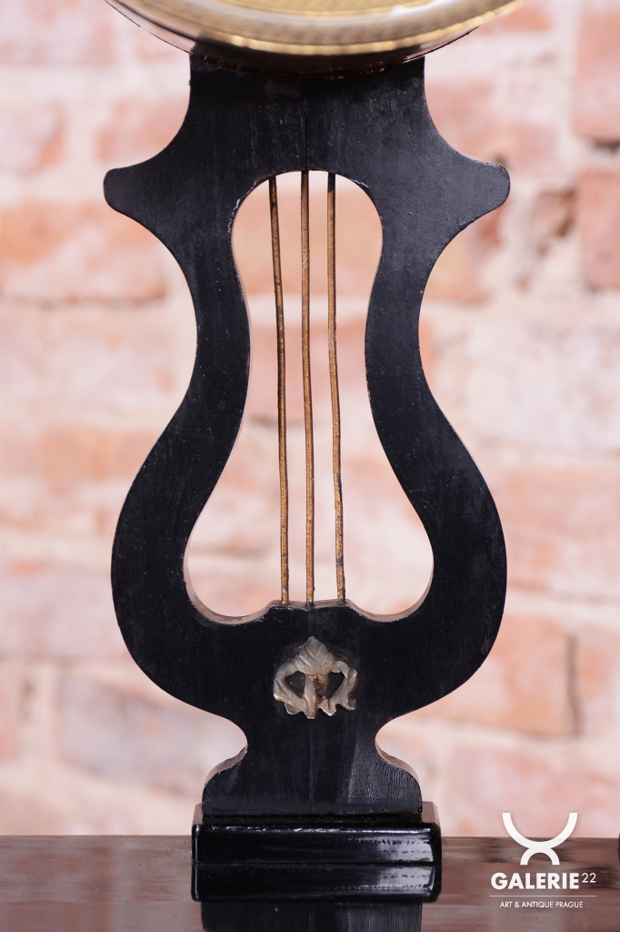 Ležící postava a lyra je typickými antickými vzory pro styl empír.