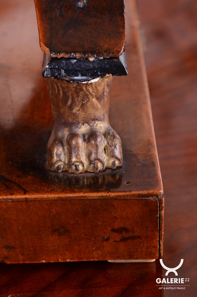 Lví tlapy a sloupky - polychrom, zlacený plátkovým zlatem.