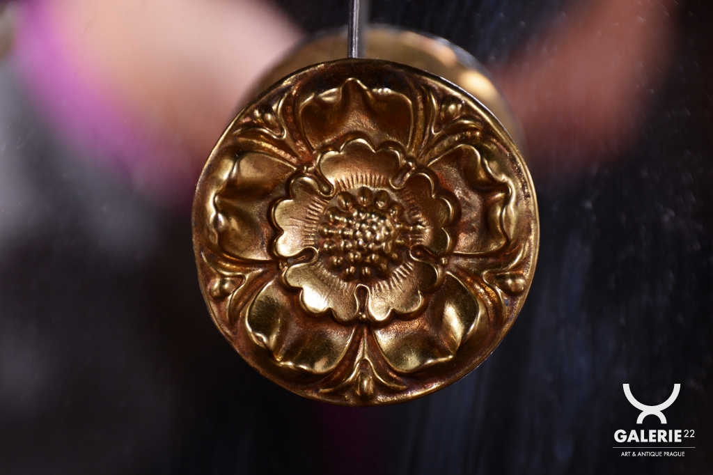 Mosazný, cizelovaný rámeček ciferníku v kombinaci s původním smaltem.