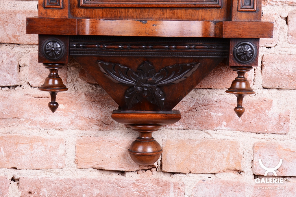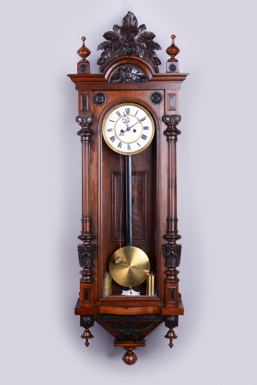 Bohatě vyřezávané tělo hodin, včetně koruny.