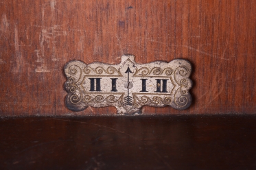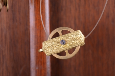 Mosazný rámeček a zdobené kyvadlo.
