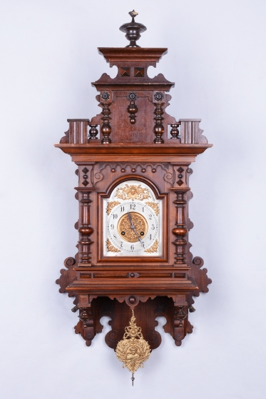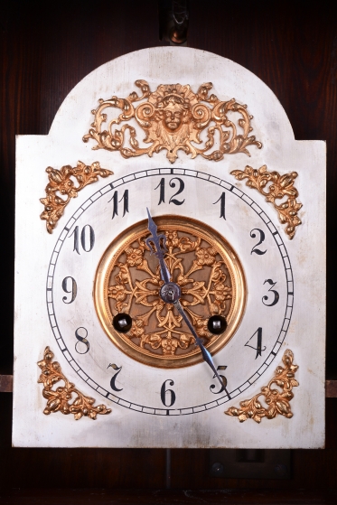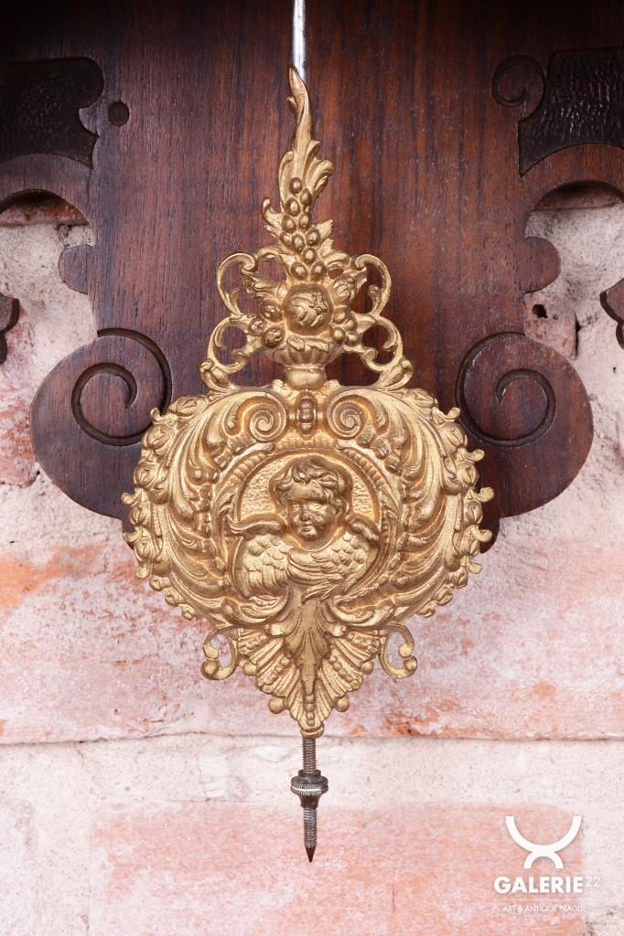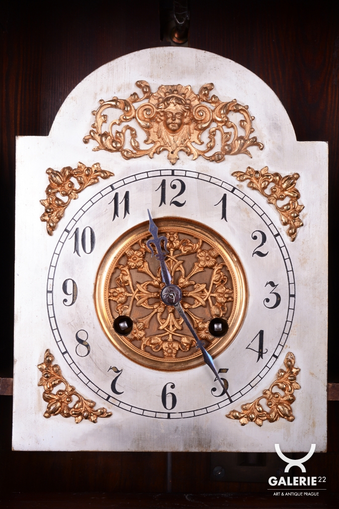 Ozdobně tlačené kyvadlo, ciferník a ozdoby vše mosaz.