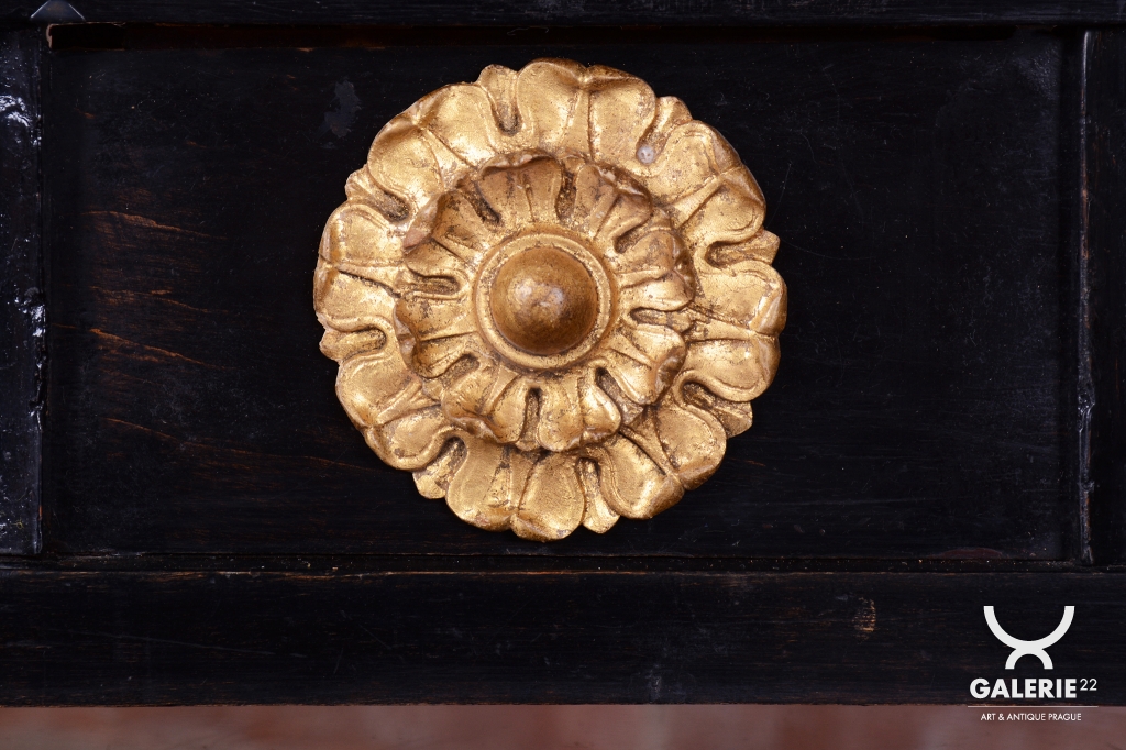 Ozdoby - perleť a polychrom - korintské hlavice a ostatní zlaté prvky - vše zlacené plátkovým zlatem.
