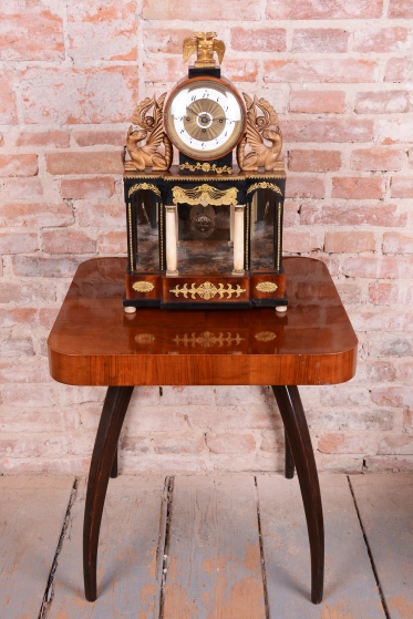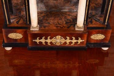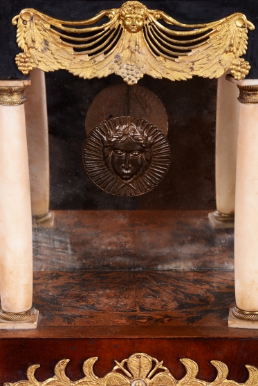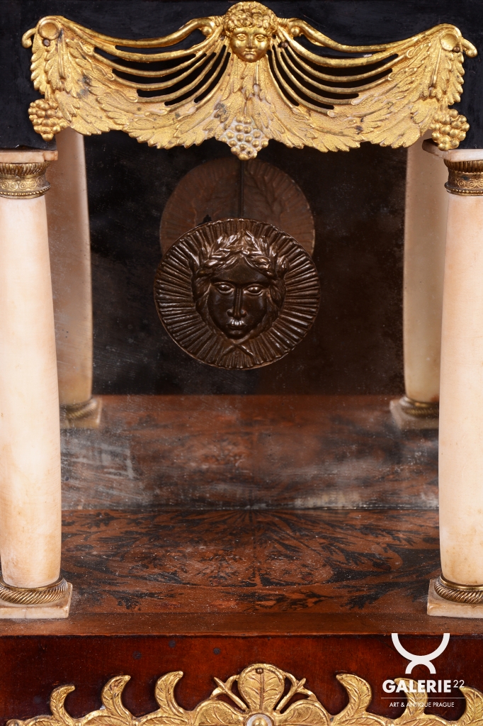Mosazný rámeček a cizelovaný ciferník v kombinaci se smaltem.